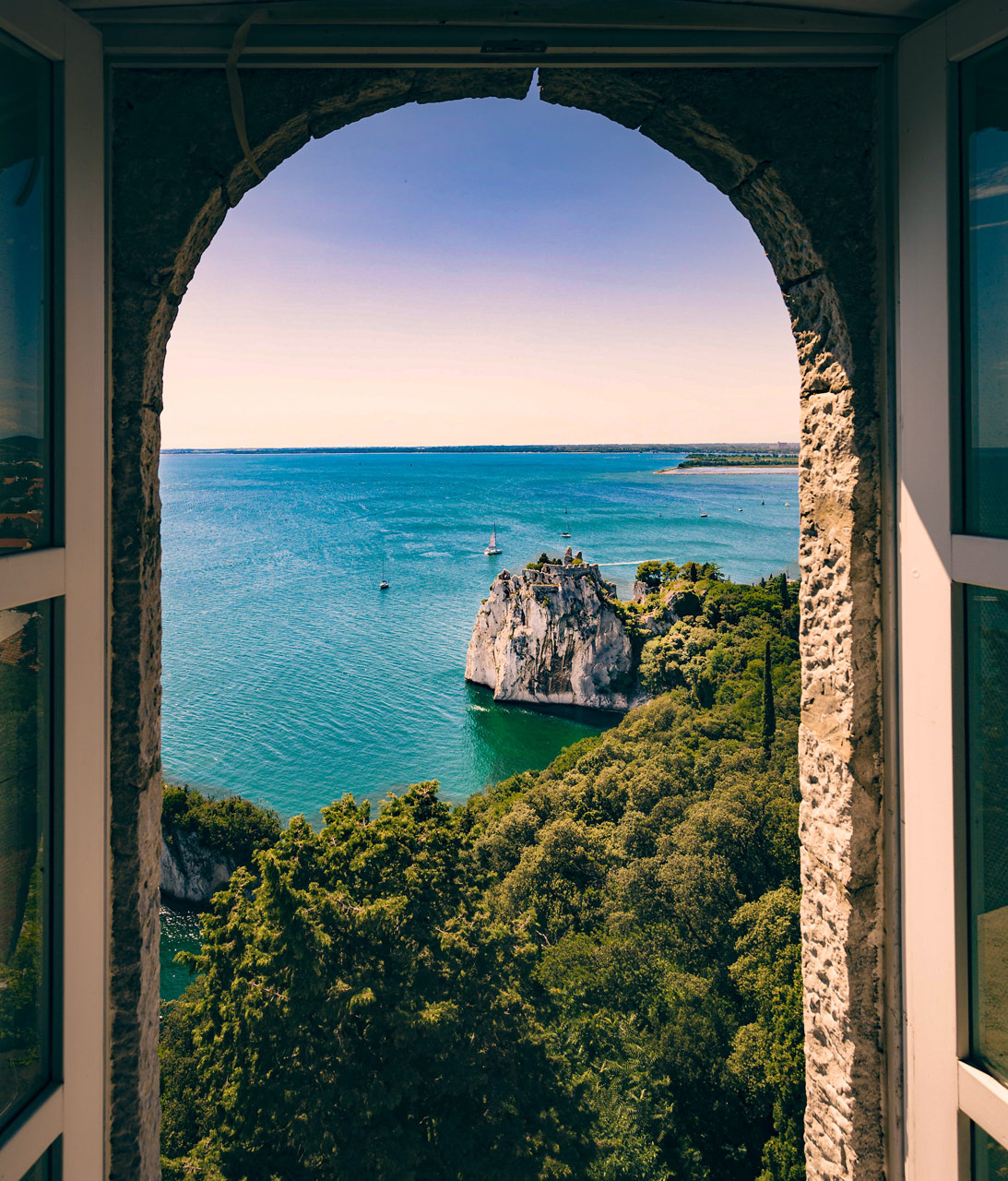 Folyamatos utazás Szlovénián keresztül, melyet 3-4 óránként megszakítunk pihenőkkel. A kora délutáni órákban érkezünk meg Triesztbe, ahol városnézés után egy különleges nosztalgia villamossal ellátogatunk Opicinába (nem minden indulásnál üzemel), majd visszatérve Triesztbe továbbhaladunk a parton és megtekintjük a Duino kastélyt, ahová egy könnyed sétát követően Sistiana és Duino között a hegygerincen (kb. 2 km) érkezünk.