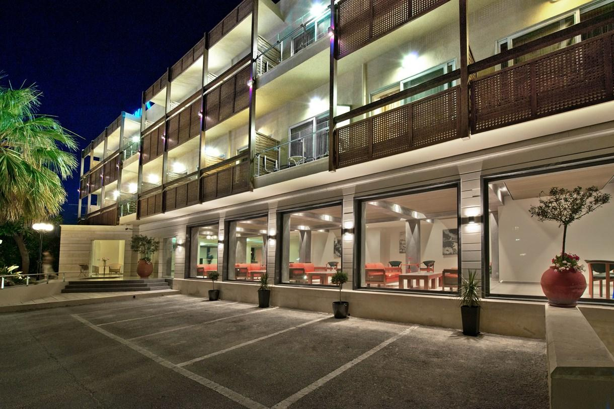 Rethymno központjától csak párszáz méterre, a Kék Zászlós homokos tengerparttól kb 150 m-re található, közkedvelt, családi vezetésű, színvonalas szálloda, amelyet pálmafás, virággokkal díszitett kert tesz még hangulatosabbá. Ideális választás főleg pároknak, fiataloknak és idősebbeknek egyaránt. Közvetlen közelében éttermek, kávézók, fagyizók, üzletek várják az idelátogatókat.