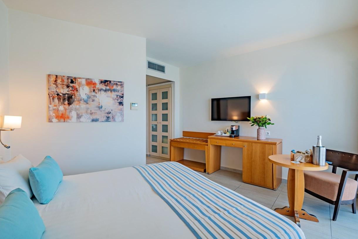 All inclusive ellátás felár ellenében: nemzetközi és görög specialitásokat felvonultató büfé rendszerű, látványkonyhai elemeket tartalmaz. A reggeli, ebéd, vacsora az Ambrosia étteremben kerül felszolgálásra és a következőket tartalmazza: korai reggeli 05:00-07:00 között ( előre foglalva ), korai kontinentális reggeli 07:00-07:30 között, büféreggeli ( amerikai és helyi különlegességekkel 07:30-10:30 között, ebéd: nemzetközi és görög fogásokat tartalmazó büfé ebéd 12:30-14:30 között, vacsora: nemzetközi és görög fogásokat tartalmazó büfé vacsora 18.30-21:30 között. 21:30 után bejelentkező vendégeinknek hidegtálat szolgálunk fel. Napközben a Dionysus pool bárban hideg és meleg snackek 11:00-16:00 között, sütemények, édességek 16:00-18:00 között. Italcsomagok: Ambrosia étteremben nyitva tartási időben ingyenes palackozott víz, márkás üdítők, csapolt sör és helyi bor, Dionysos pool bár és Bacchus lobby bár: hideg és meleg frissítők, üdítők, gyümölcslevek, válogatott márkás alkoholos és alkoholmentes italok, koktélok, csapolt sör. A szobákban tea és kávé készítési lehetőség, érkezéskor palackos ásványvíz várja vendégeinket. A medencénél ingyenes napernyők és nyugágyak, strandtörölközők. Rendszeres animációs programok szórakoztatják vendégeinket. Érkezéskor üdvözlő ital, 25 % kedvezmény az all inclusive ellátásban nem szereplő italok árából. A szezonalitástól és az időjárástól függően hetente egyszer ingyenes lehetőség gálavacsorán vagy barbecue esten történő részvételre ( előzetes foglalás szükséges )