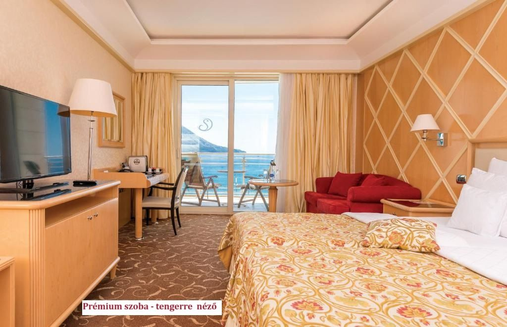 • Prémium szoba kilátással a tengerre (Premium Sea View): 42 m2, erkély a legjobb kilátással a tengerre és a Becici-öbölre, franciaágy vagy két külön ágy, kanapé (1,9 m x 1 m), saját fürdőszoba káddal/zuhanyzóval.A szobában legfeljebb 3 fő szállásolható el.