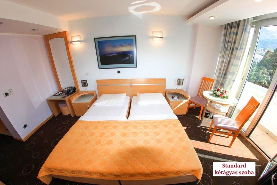 - Standard kétágyas szoba (DBL Standard): 22 m², parkra vagy hegyre néző, két egyszemélyes ágy (összetolható), saját fürdőszoba zuhanyzóval. A szoba pótágyazható. Legfeljebb 3 fő elszállásolására alkalmas.