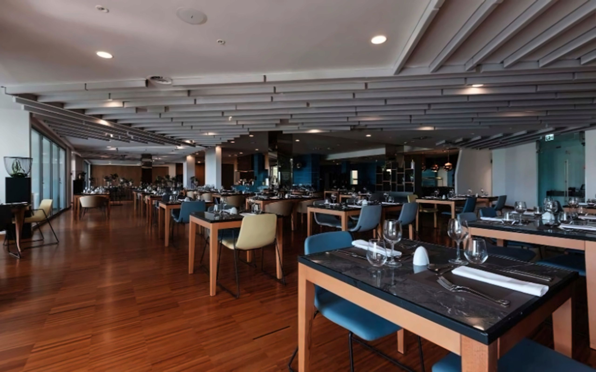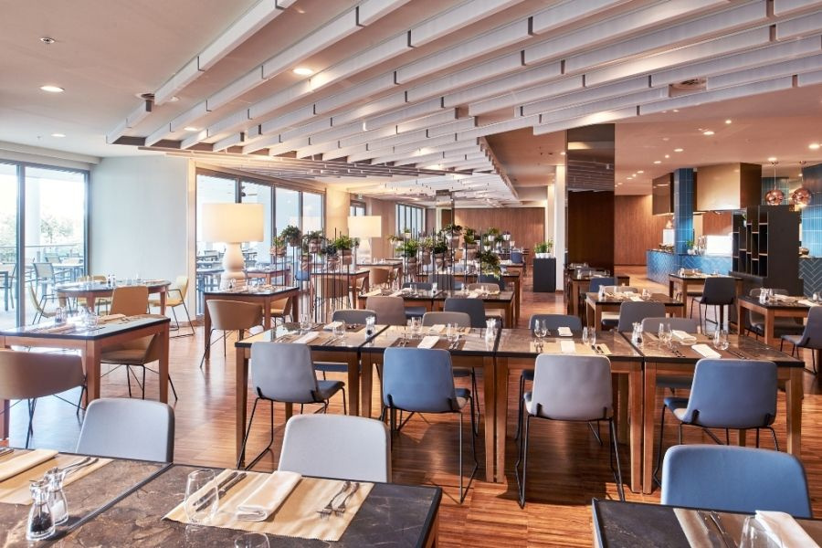 - A szabadtéri társalgóban étterem és lobby bár található, ahol nemzetközi, mediterrán és nemzeti ételeket szolgálnak fel.
