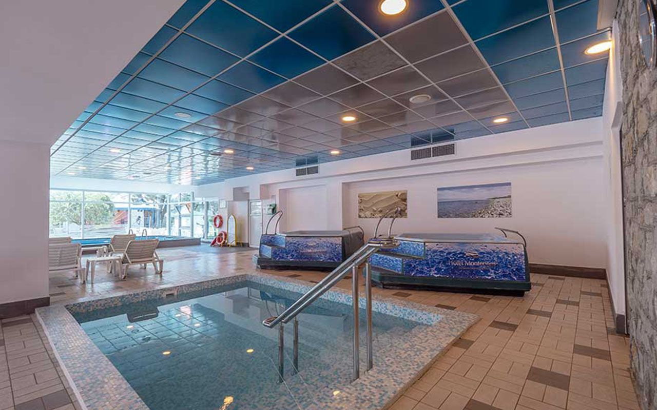 - Wellness-központ: 2 szabadtéri medence, köztük gyerekmedence, fűtött fedett medence (30°C), 2 jacuzzi, 2 szauna, török gőzfürdő