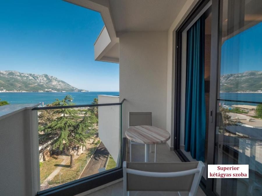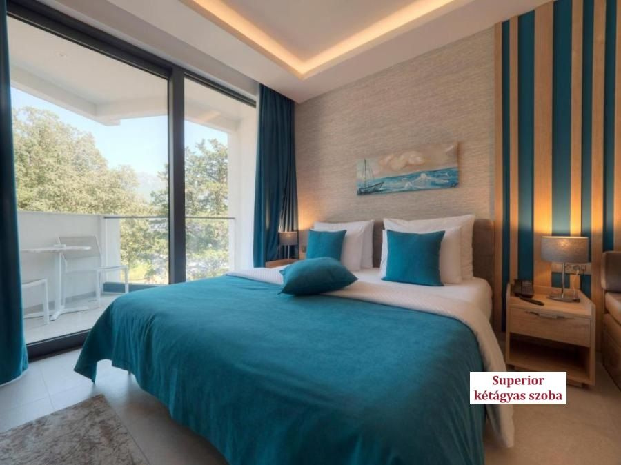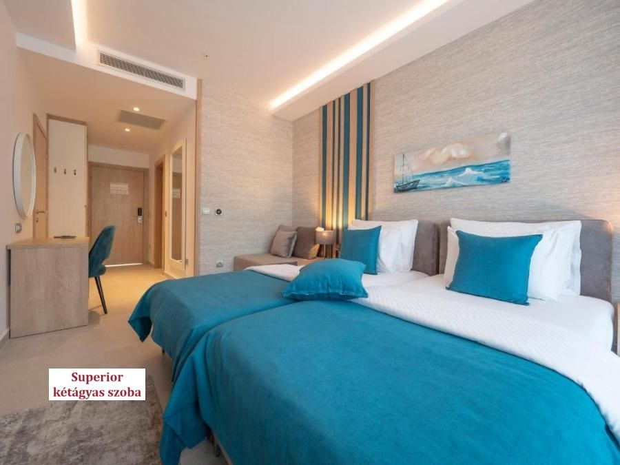 - Oldalról tengerre néző superior kétágyas szoba (DBL superior SS): 27 m², oldalról tengerre néző erkély, részleges kilátással a parkra, franciaágy vagy 2 egyszemélyes ágy + kanapé (kihúzva 90x190cm), fürdőszoba zuhanyzóval. Legfeljebb 3 fő elszállásolására alkalmas.