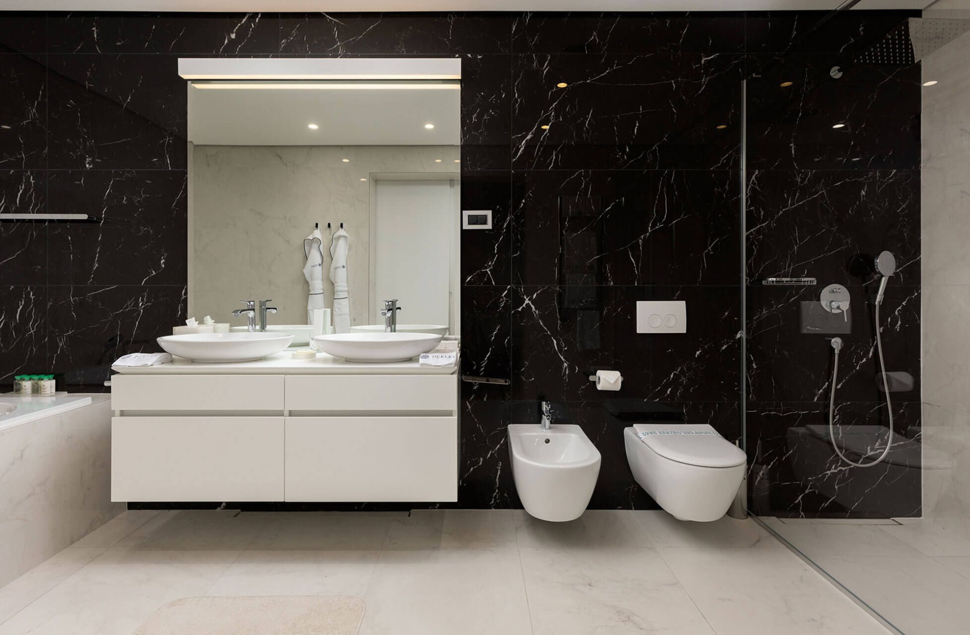 Az apartmanok (rezidenciák) teljesen felszerelt, funkcionális konyhával, étkezősarokkal, rozsdamentes acélból készült készülékekkel, mosógéppel, Bulgari piperecikkekkel, dupla mosdóval és külön gardróbszobával, designer bútorokkal és dekorációs tárgyakkal, tea- és kávékészletekkel rendelkeznek.