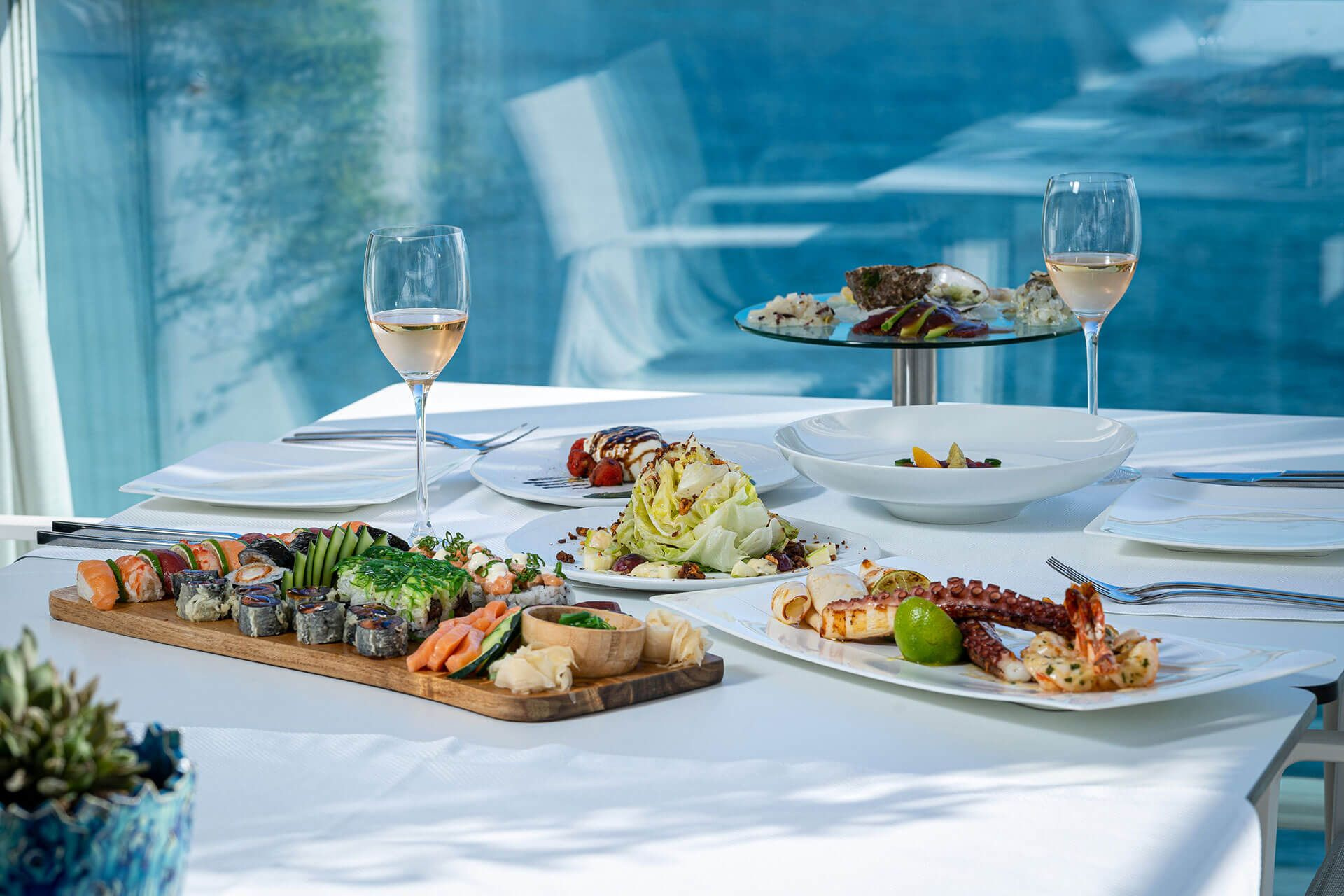 • Infinity Pool Club étterem nemzetközi ételekkel.
