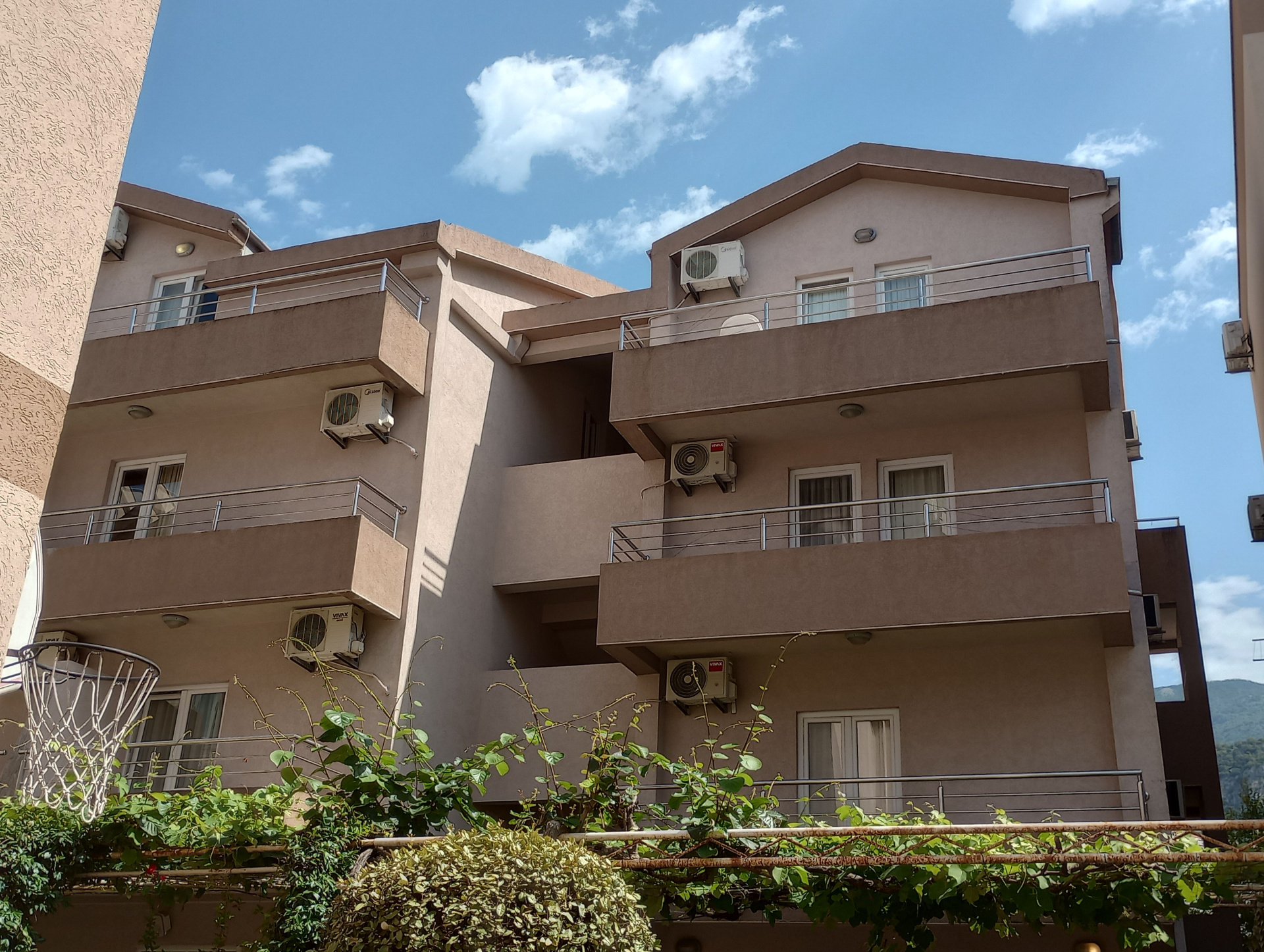 APP 03+1: 42 m2 + 2 terasz 5 m2 és 10 m2, kilátással a szomszédos házra, folyosó, vízforraló, két hálószoba franciaággyal vagy két különálló ággyal (mindkét hálószobában légkondicionáló), ajtóval elválasztott szobák, fürdőszoba zuhanyzóval. Maximális férőhely: 4 fő.