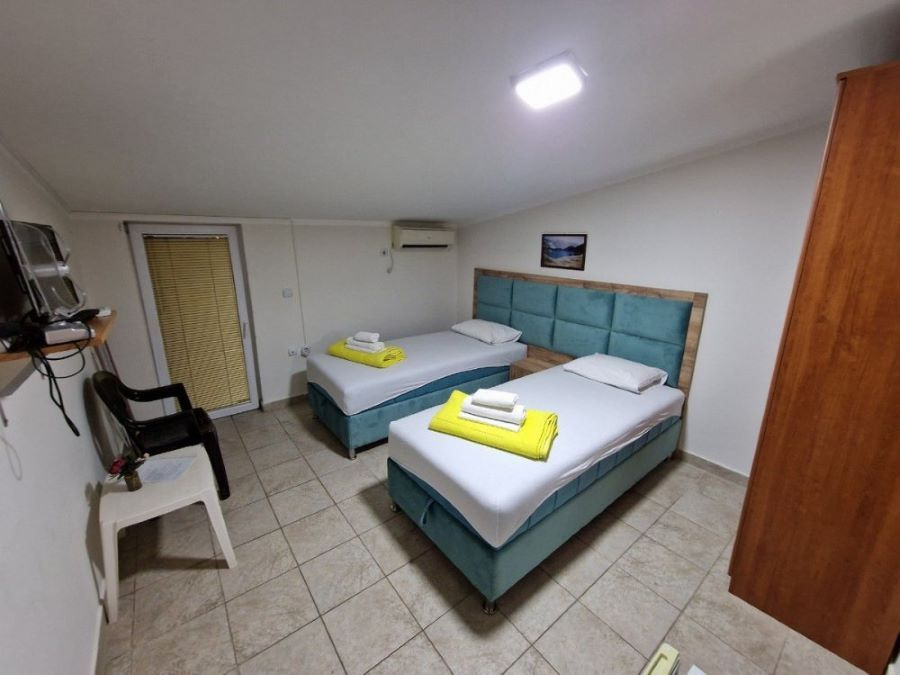 Háromágyas stúdió (Studio 02+1): 30 m², erkély 3-4 m², franciaágy + kihúzható fotelágy, konyhasarok, fürdőszoba zuhanyzóval. A stúdióban legfeljebb 3 fő szállásolható el.