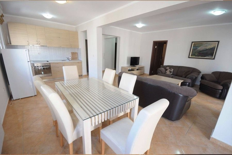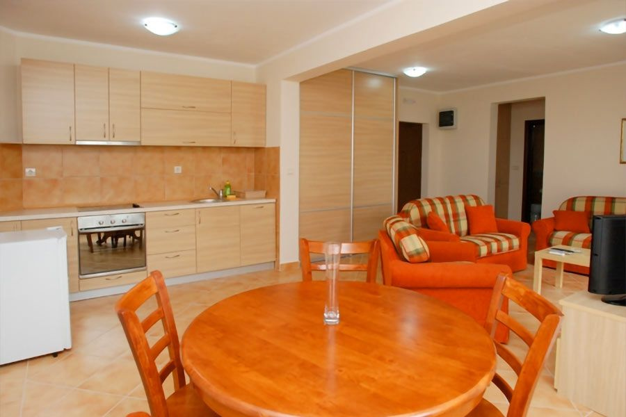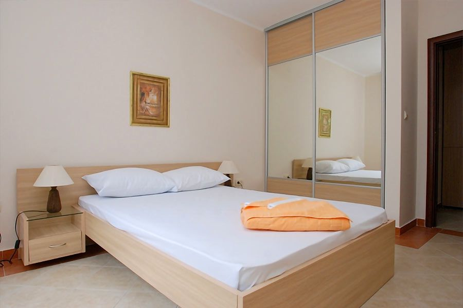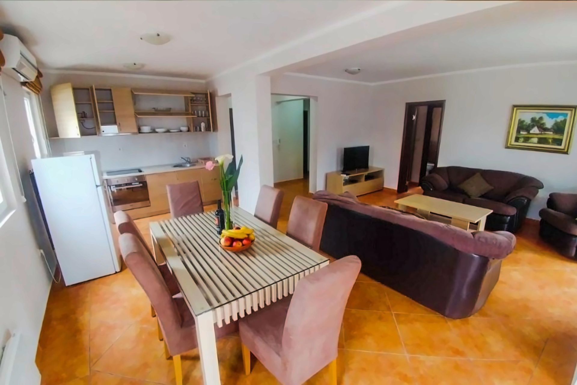 - 2 hálószobás apartman (APP 04 + 2): 95 m2 + erkély 6m2 kilátással a szomszédos házakra, tágas nappali konyhával és étkezővel, kanapéval, két hálószoba franciaággyal, saját fürdőszoba zuhanyzóval. Maximális befogadóképesség: 6 fő