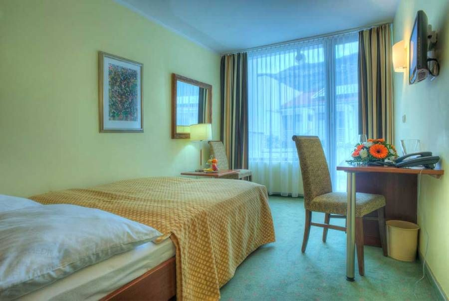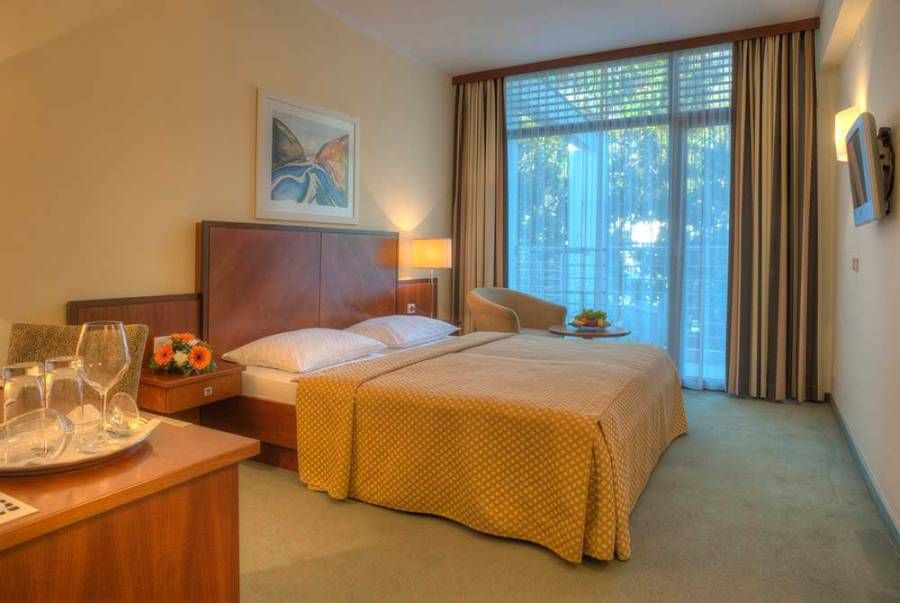 - Standard kétágyas szoba (DBL std): 23 m2, parkra néző erkély, francia ágy, fürdőszoba káddal / zuhanyzóval. A szobában legfeljebb 2 fő szállásolható el.