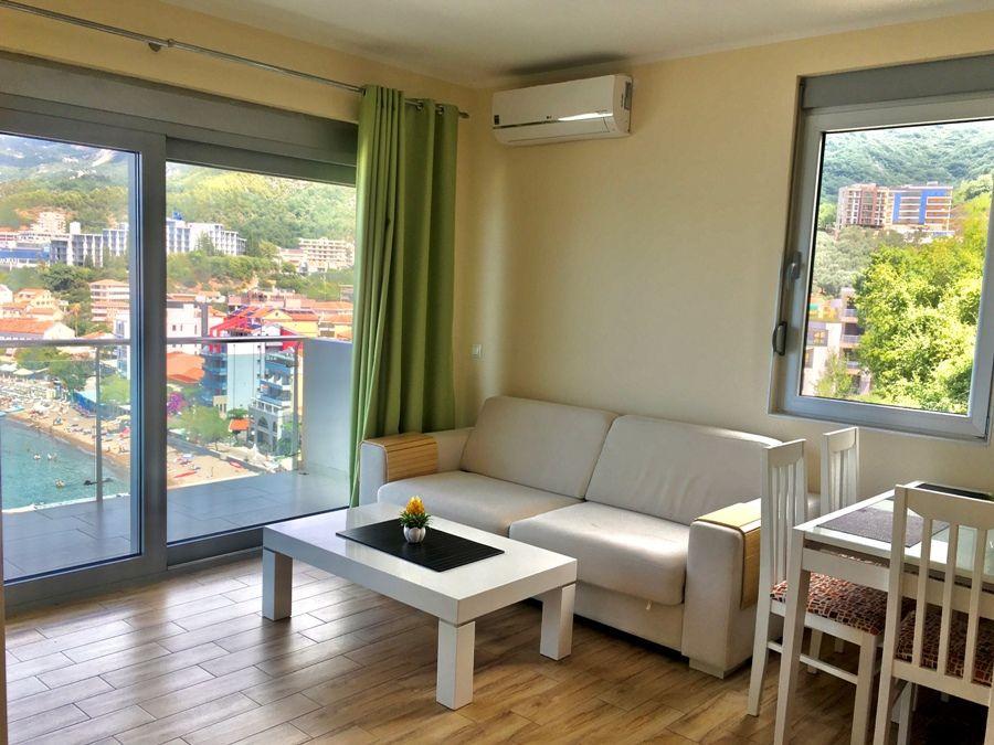 - Tengerre néző két hálószobás apartman (App 2 bdr SV): 60 m2 , tengerre néző erkély, nappali teljesen felszerelt konyhával, kihúzható kanapéval, 2 hálószoba (mindkét hálószobában franciaágy), fürdőszoba zuhanyzóval. Max.férőhely: 6 fő.