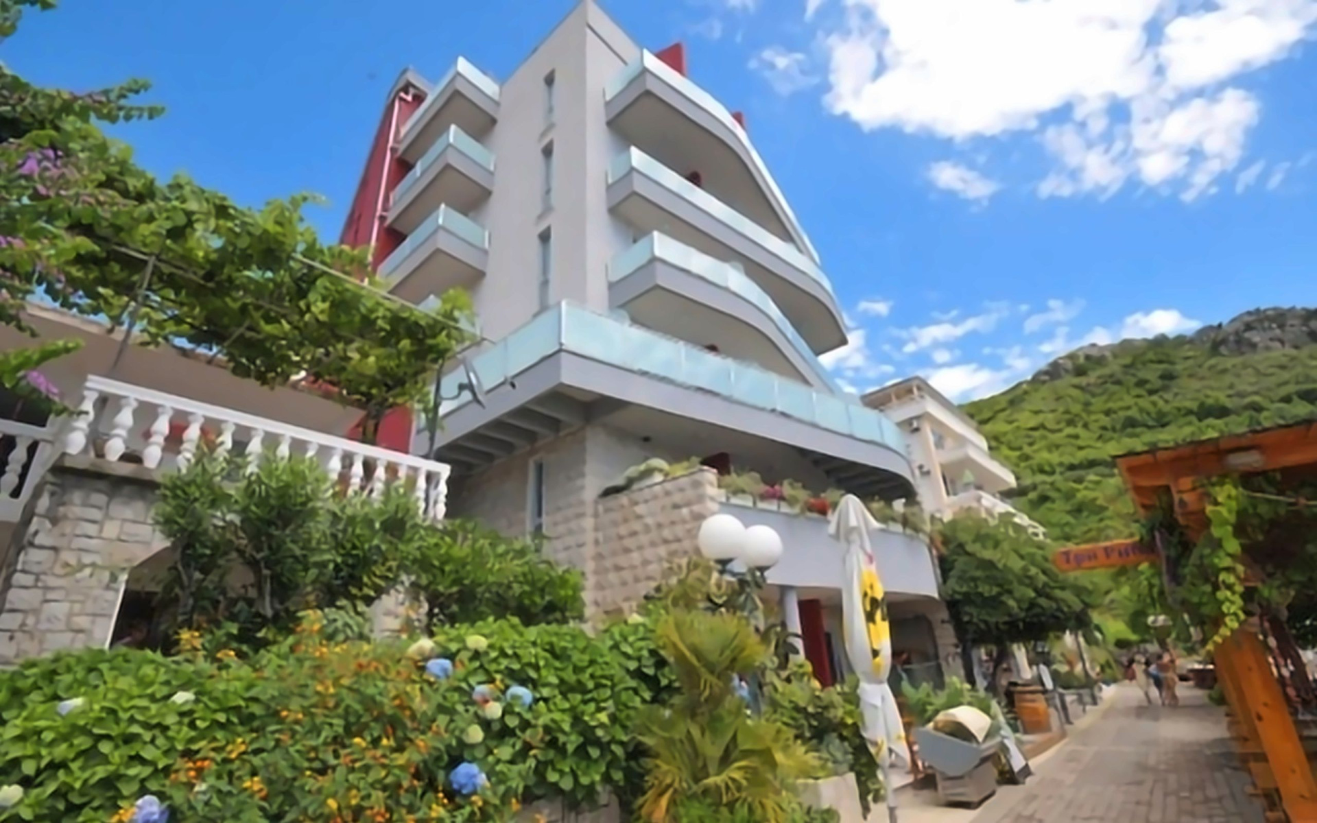 A bejárat előtt, a sétányon található egy hangulatos "Tri Ribara" halétterem, amely egész Montenegróban ismert a tenger gyümölcseinek és a friss tengeri halaknak széles választékáról.
