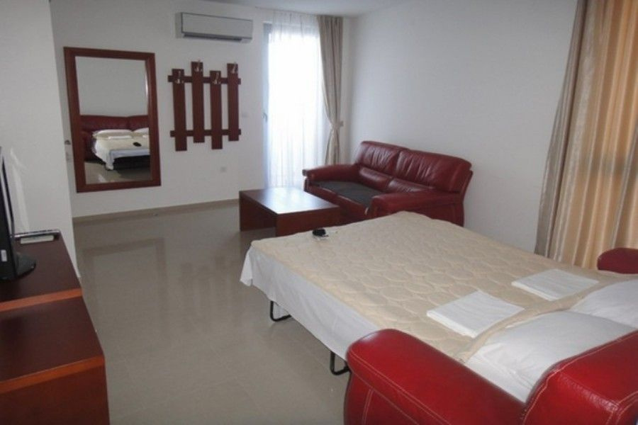 • Tengerre néző egy hálószobás apartman (APP 04 One bedroom Sea View, No6,12,18,24):  36 m2,  tengerre néző erkély 6-14m2, nappali kanapéval (140×200cm), konyhasarok (edénykészlet, vízforraló, főzőlap), hálószoba franciaággyal (160x200cm), fürdőszoba zuhanyzóval, mosógép. Max. férőhely: 4 fő