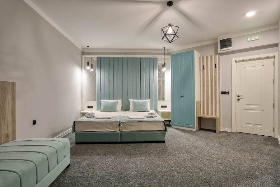 - Kétágyas oldalról tengerre néző superior szoba - kb. 24 m2, erkély 5m2 oldalsó kilátással a tengerre, franciaágy vagy két külön ágy, saját fürdőszoba zuhanyzóval. A szobában legfeljebb 3 fő szállásolható el.