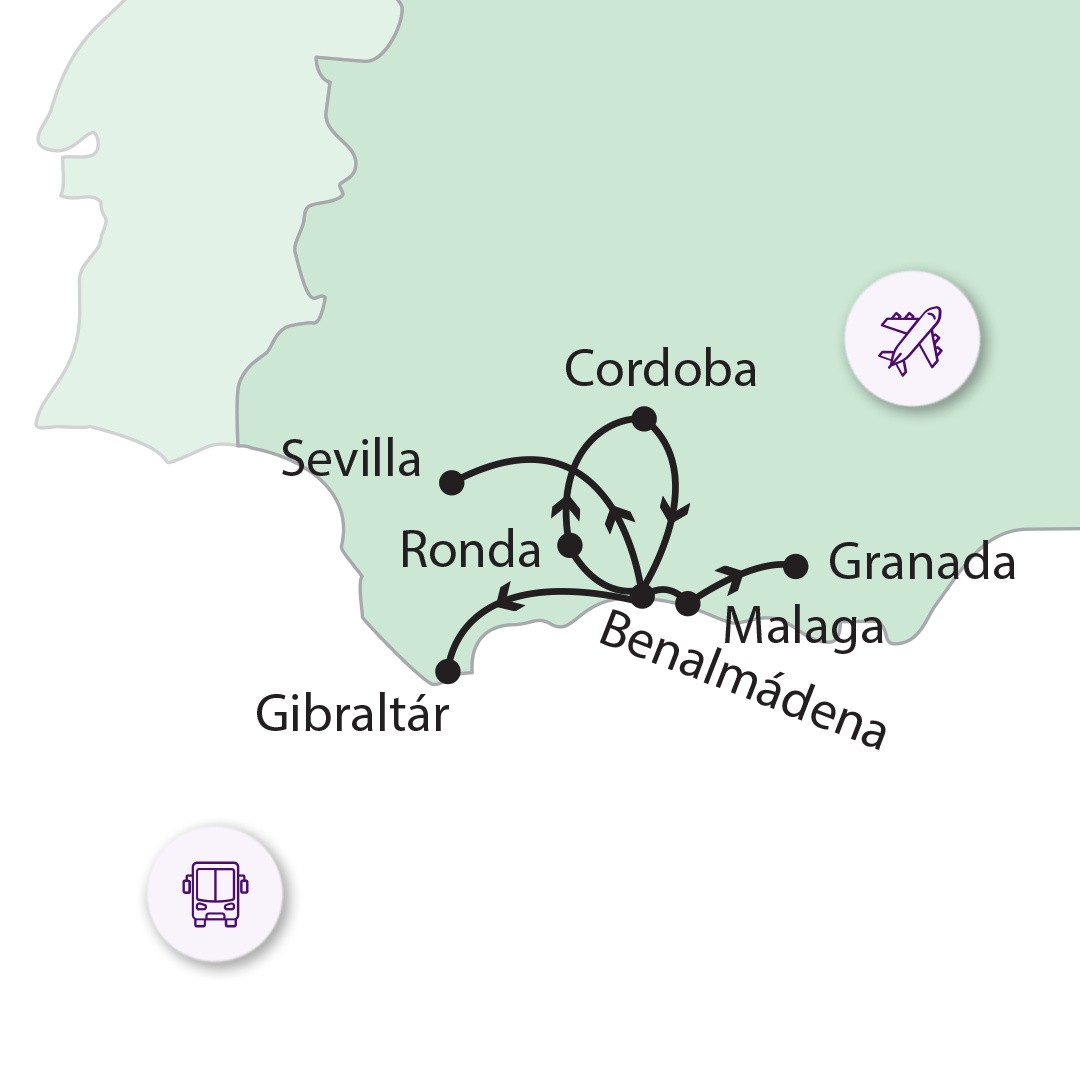 ">Gibraltárhoz látogatunk el. Gyalog lépünk be a határon, ahonnan helyi kisbusszal folytatjuk programunkat. A határátlépéshez személyi igazolvány vagy útlevél szükséges. Alaposan bejárjuk az Alsóvárost, ami igen változatos képet nyújt erőd falaival, különböző vallásokhoz tartozó templomaival. Majd felmegyünk a híres fehér sziklára. Itt található egy vízesés, amely mesterséges, a tengerből szűrt ivóvíz mellékterméke, továbbá egy mecset, egy arab erőd és az Európa pont, ahonnan Afrikáig elláthatunk. Meglátogatunk egy káprázatos cseppkőbarlangot, majd találkozunk a szikla majmaival, kik vidáman élik életüket. Gyönyörködhetünk ugrándozásukban, pajkos játékukban, és ahogy egymást kurkásszák. A magasból csodálhatjuk a tájat, hisz belátjuk az egész öblöt hatalmas hajóforgalmával. Elképesztő látvány! Végezetül pihenhetünk, ebédelhetünk, és természetesen vásárolhatunk a szabad vámterületű boltok sokaságában.