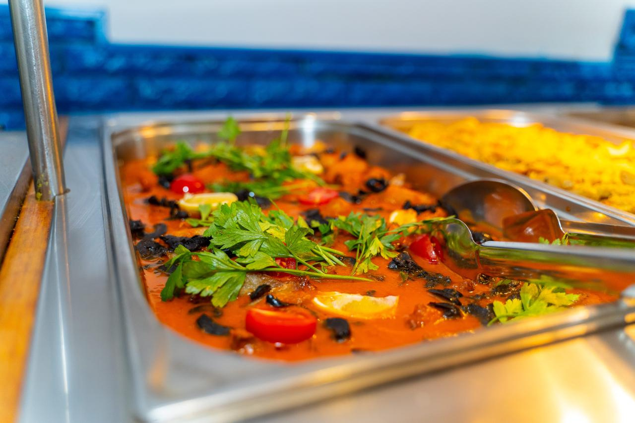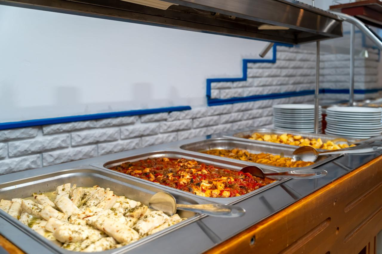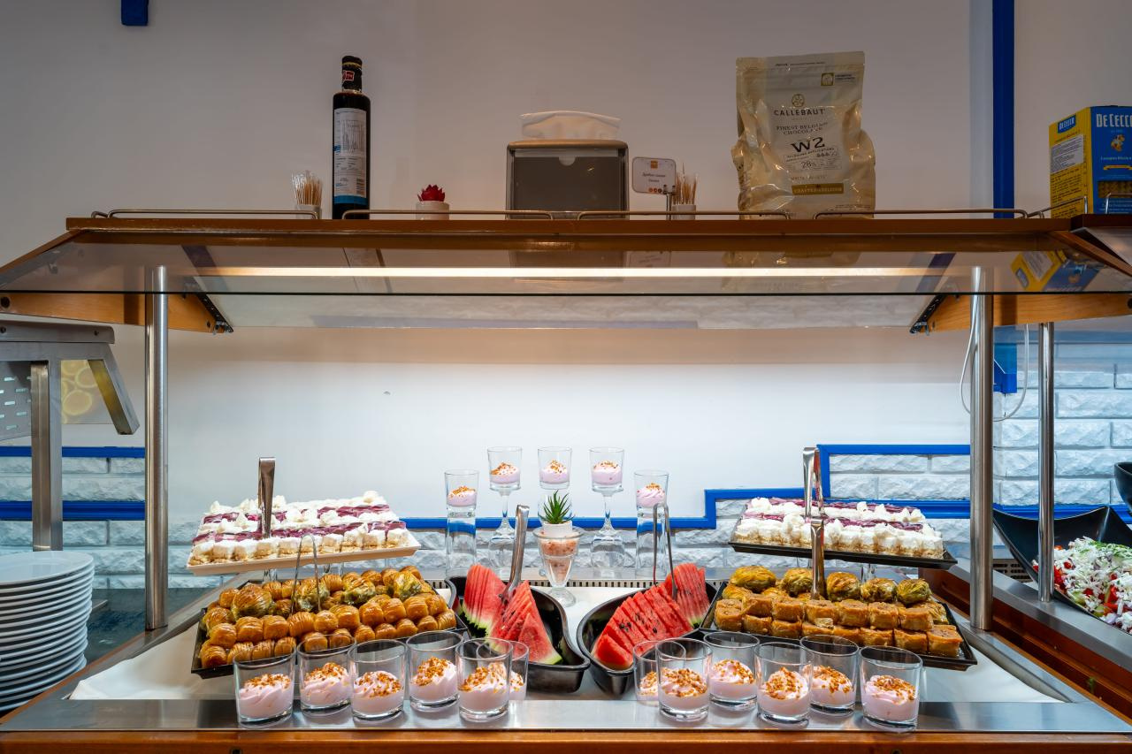 A szálloda all-inclusive light étkezési szolgáltatást kínál. A reggeli büféasztalról vehető. Az ebéd és a vacsora szintén büféasztalról vehető, előételekkel, salátákkal és desszertekkel. Az étkezésekhez étterem (kalóriaszegény és vegetáriánus ételek) és medencebár áll rendelkezésre. A szálloda italválasztéka vizet, üdítőket, kávét és teát, sört és bort tartalmaz. Vacsorához a vendégeknek megfelelő öltözéket kell viselniük az étteremben.