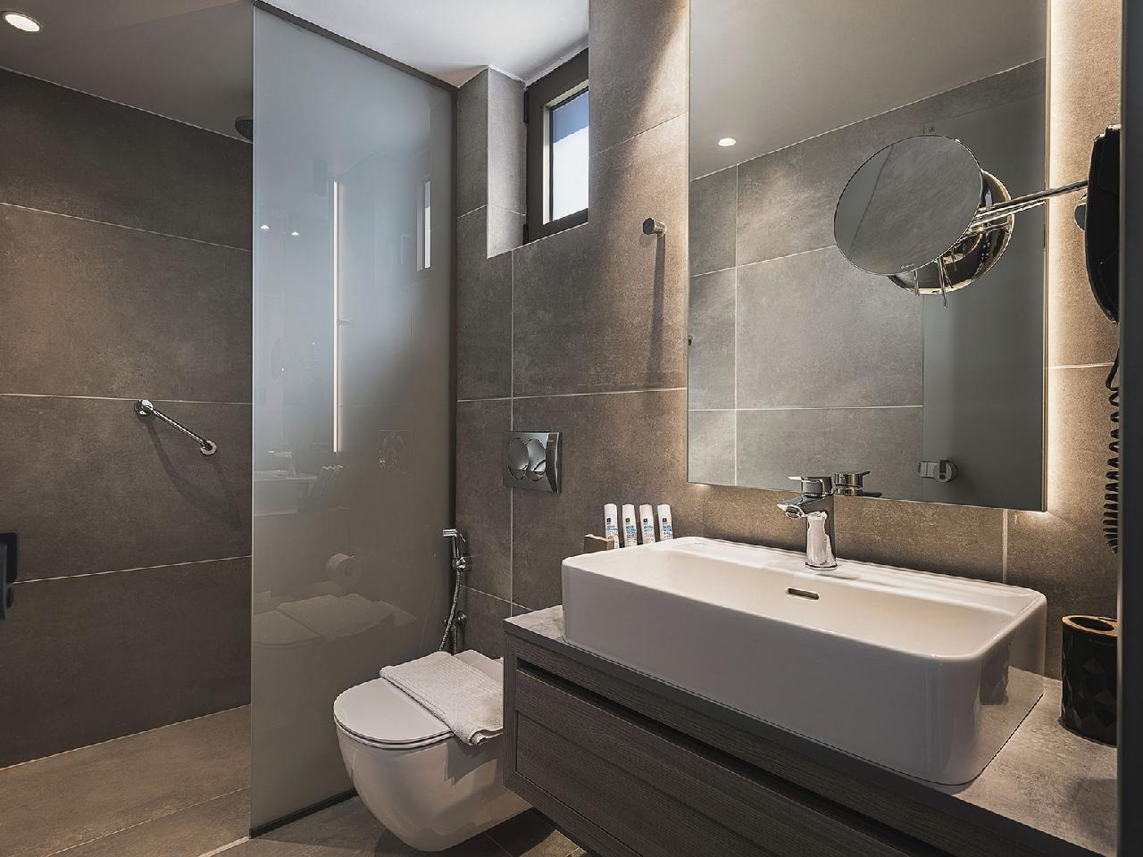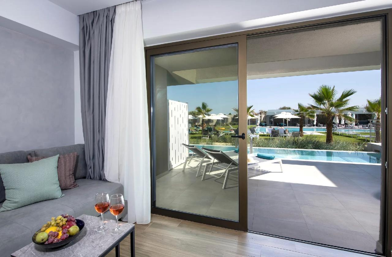 2-3 fős kerte vagy tengerre néző superior szobákban és 3-4 fős grand superior, szobákban, amelyek légkondicionáltak,tea és kávéfőzési lehetőséggel, műholdas Tv-vel, zuhanyzós fürdőszobával, hajszárítóval felszereltek, erkéllyel vagy terasszal rendelkeznek.