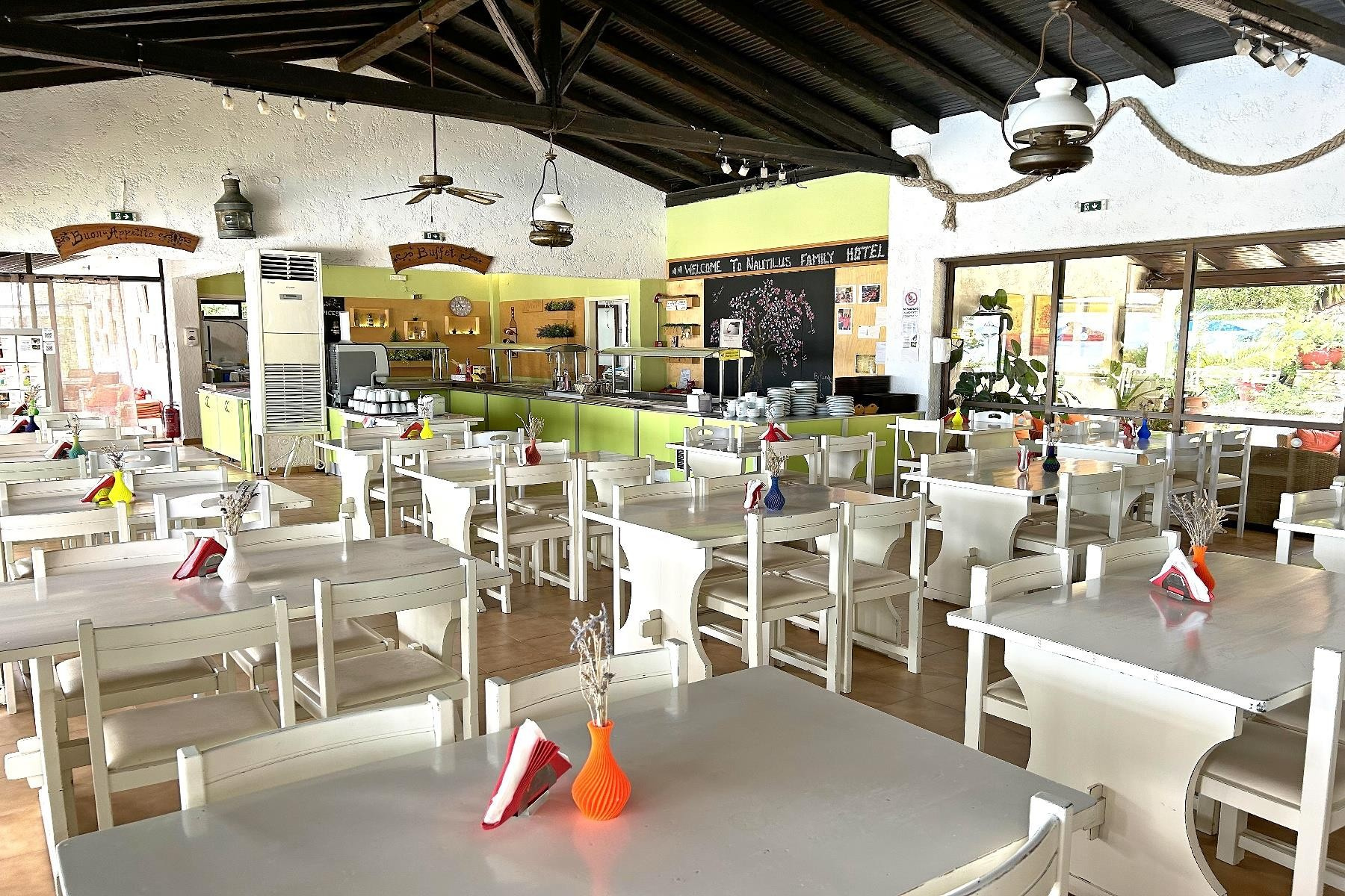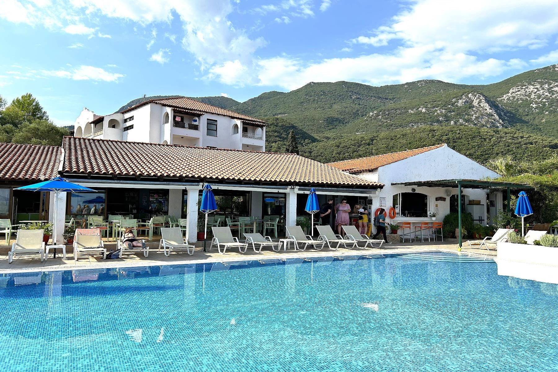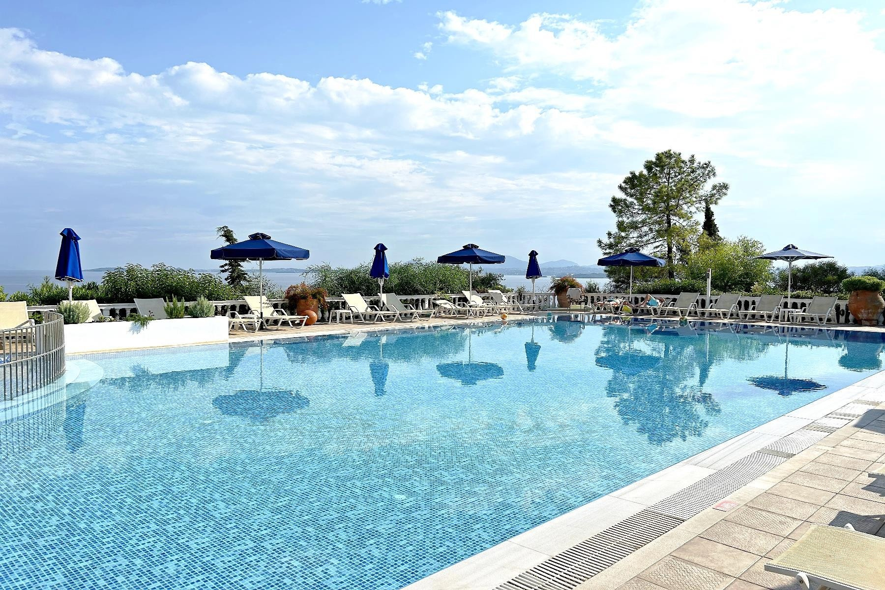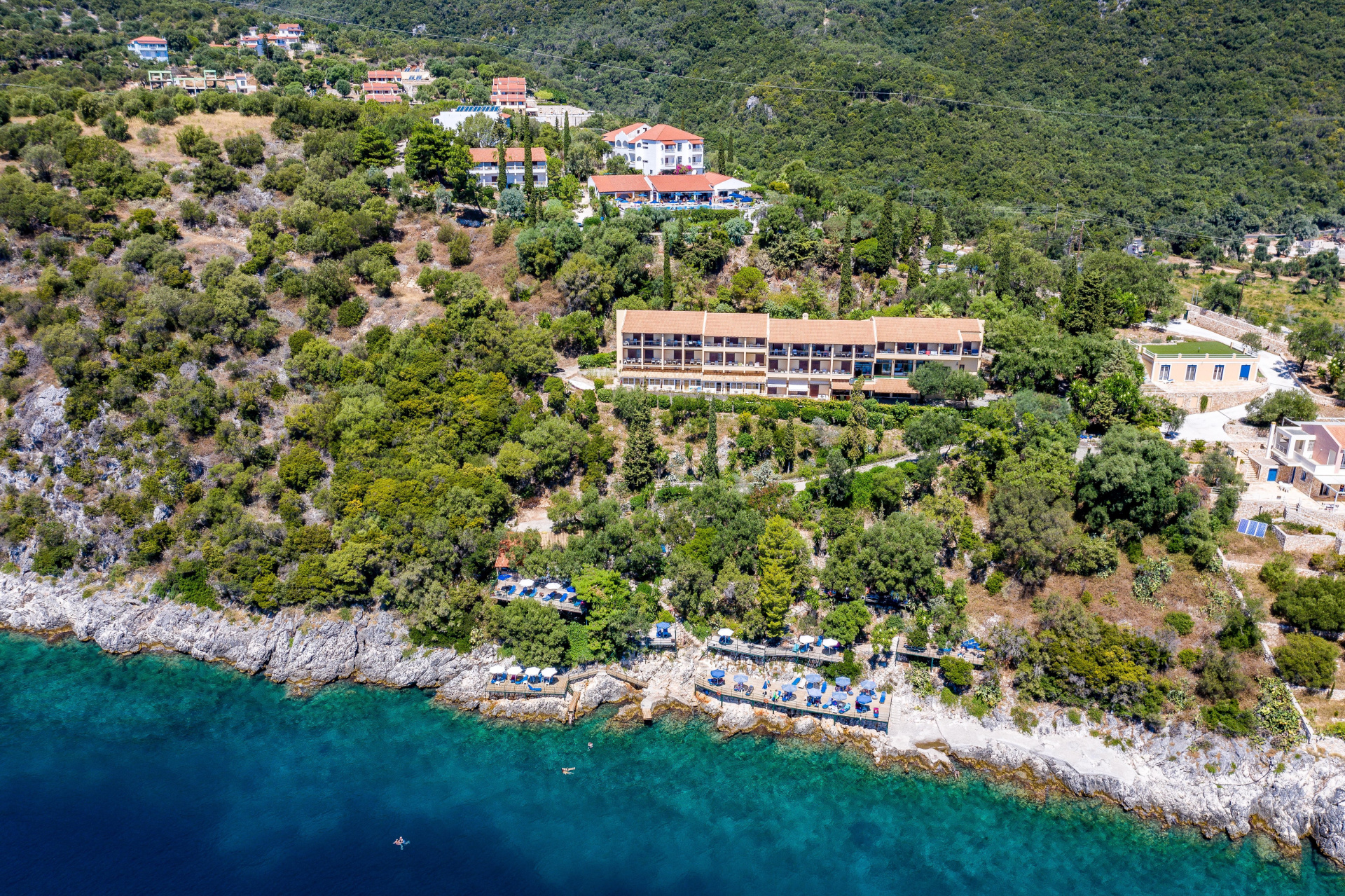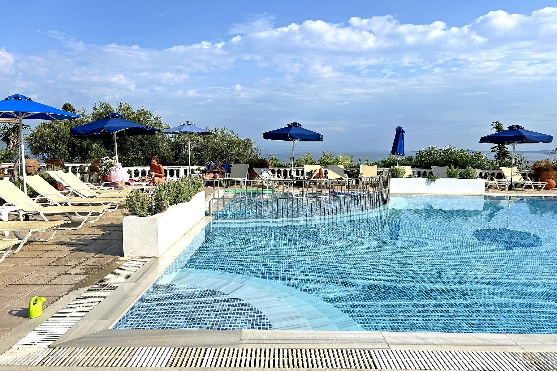 A családias hangulatú, komplexum egy főépületből és 4 melléképületből áll. A sziget északkeleti részén, egy sziklán helyezkedik el, ahonnan gyönyörű kilátás nyílik a tengerre, ahova a szálloda alatt található mólón lehet kijutni. A közeli Barbati strand kb. 15 perces sétával érhető el. A közelben vásárlási lehetőségek, tavernák és bárok. A szálloda ingyenes, időszakosan közlekedő transzfert kínál a vendégeknek a barbati strandra.