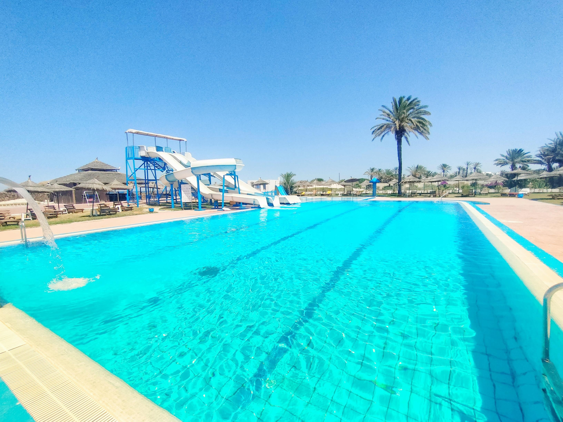 - medence csúszdákkal (napágyak és napernyők ingyenesen)