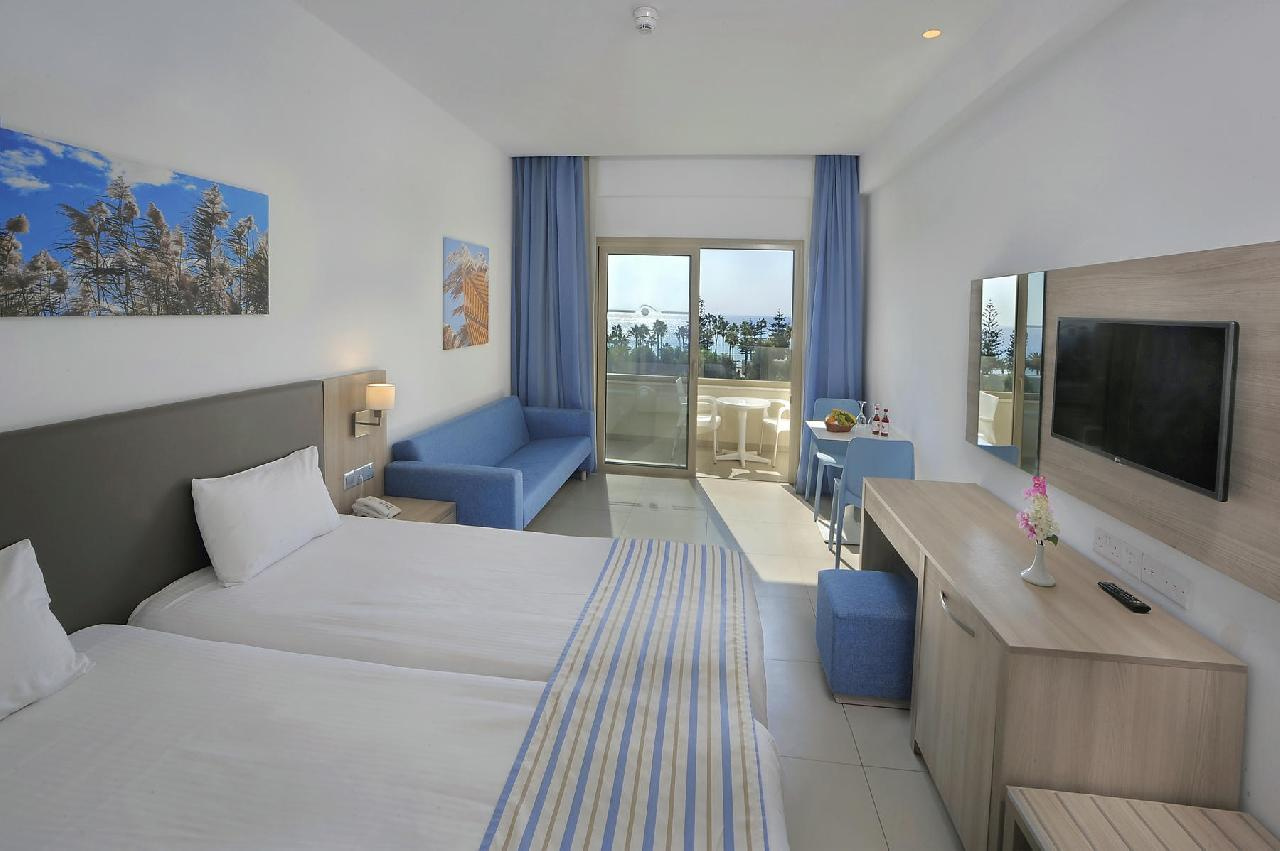 Ayia Napa városközpontjától kb.2 km-re, az üdülőhely leghíresebb részén, a fehér homokos és pálmafás Nissi strandtól mindössze kétszáz méterre épült, főépületből és több kis villaszerű bungalóból (a főépülettől út választja el) álló modern és barátságos 169 szobás szálloda.