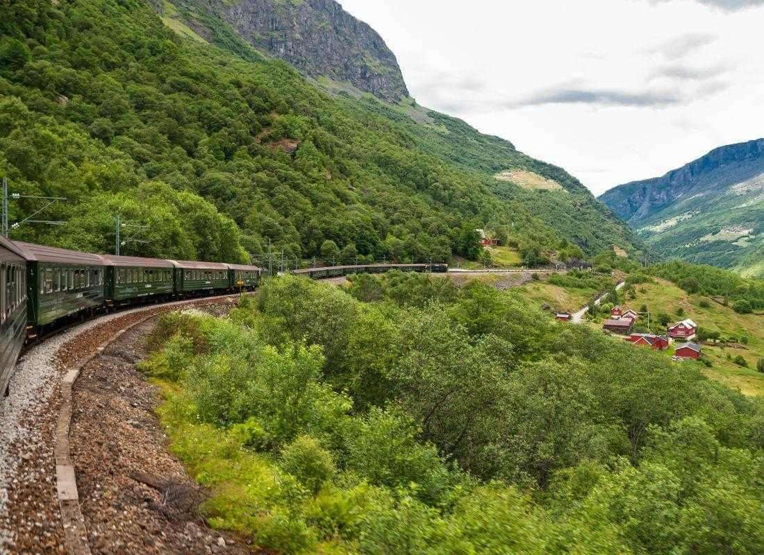 3. Lehetőségünk lesz kipróbálni Norvégia legismertebb és leglátványosabb vasútvonalát, a Flamsbana-t. A vasútvonal 20 km-en keresztül kanyarog, 20 alagúton és 1 hídon keresztül, legmeredekebb szakaszán 5,5 fokos dőlésszöggel. Amint felszállunk a zöldre festett vonatra, máris úgy érezhetjük, mintha egy régi filmben szerepelnénk: a plüss ülések és fa borítású vagonok visszarepítenek minket az időben.