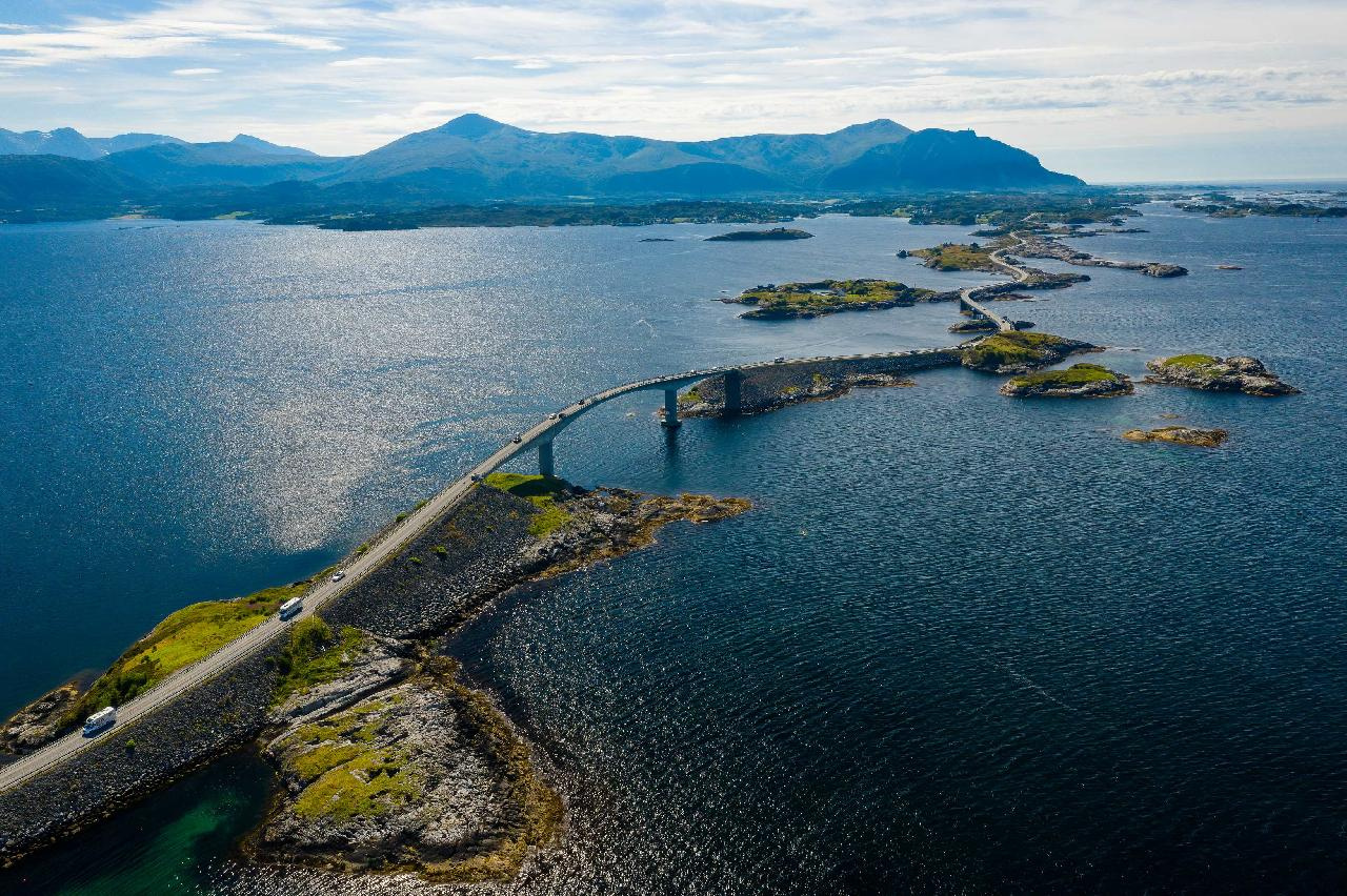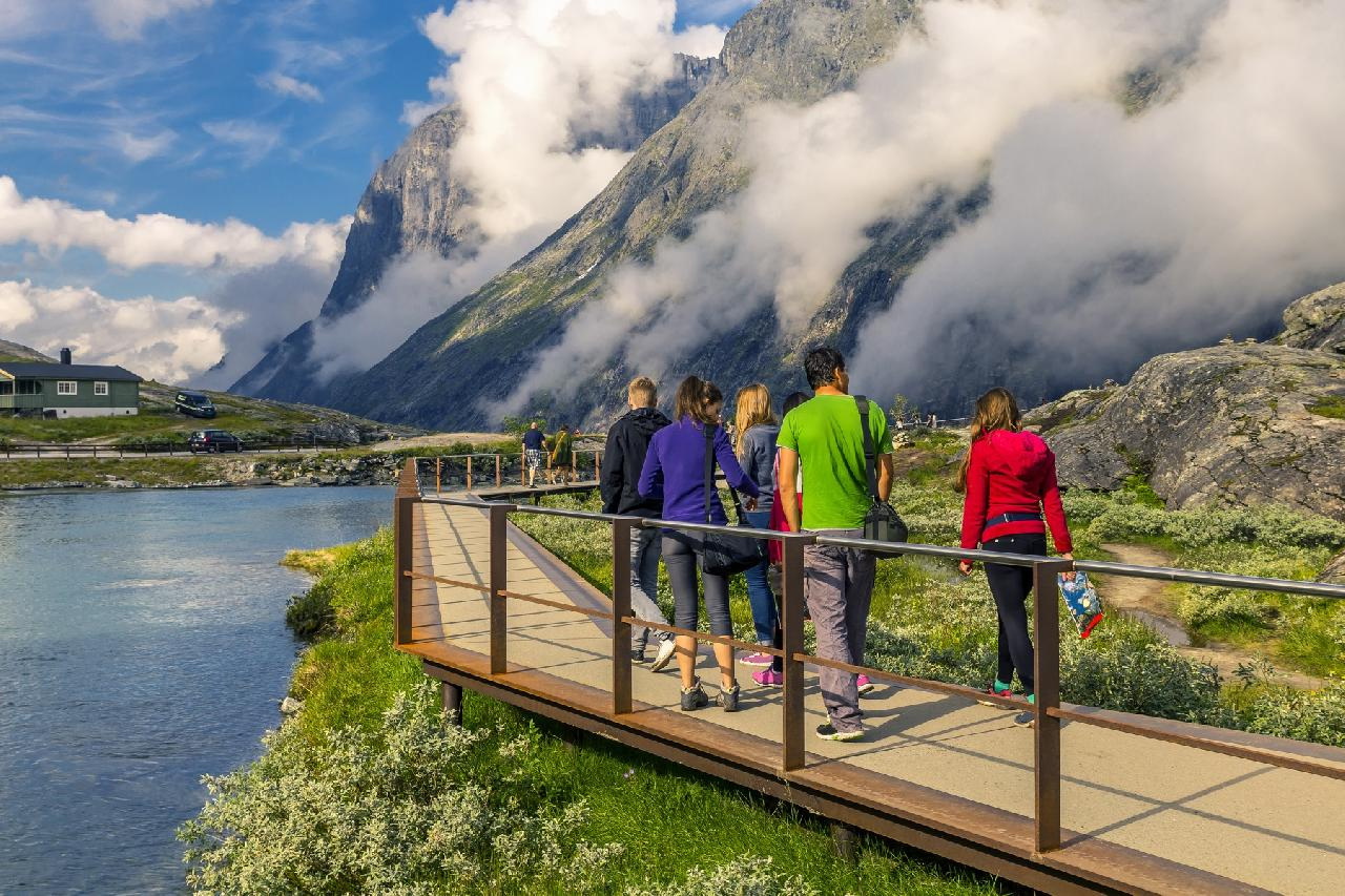 Reggeli után északnyugatra utazunk, az Északi-tenger partján épült KRISTIANSUND-ba. A vad part, a tenger tomboló haragja ellenére a település halászatból, valamint a szárított tőkehal exportjából él. Ezt követően a napot egyedülálló látnivalók között töltjük. Először az Atlanterhavsveien (Atlanti-út) haladunk át. A szigeteket, mint egy hullámvasút kapcsolja össze az aszfaltút, miközben mindenütt víz vesz körül bennünket: úgy érezhetjük, mintha nem is közúton buszoznánk, hanem vízen hajóznánk. Hidakon és kompon átkelve jutunk a Trollok útjához. A Trollstigenveien Norvégia egyik leglátványosabb útvonala. A mintegy 1000 méter magas, függőleges - a helyiek által csak Trollok falának nevezett - sziklafal kedvelt fotótéma. A lélegzetelállító hegyvidéki tájat vízesések kísérik, melyek közül leglátványosabb a Stigfossen. A közúti forgalmat lebonyolító útvonal áthalad a vízesés fölött, így jobbról is és balról is láthatjuk a lezúduló hófehér vizet. Leereszkedve a hegyvonulatról a Stor-fjord partjára érünk. Ennek a fjordnak egyik, s egyben legszebb ága a Geirangerfjord, a következő napi programunk fő látványossága. A napunk befejező állomása ALESUND városa. A hajdan halászatból, ma inkább haltenyészetből és halfeldolgozásból élő város szépségét az 1904-es tűzvésznek „köszönheti”, ami után szecesszió stílusában építették újjá. Szállás Alesundban.