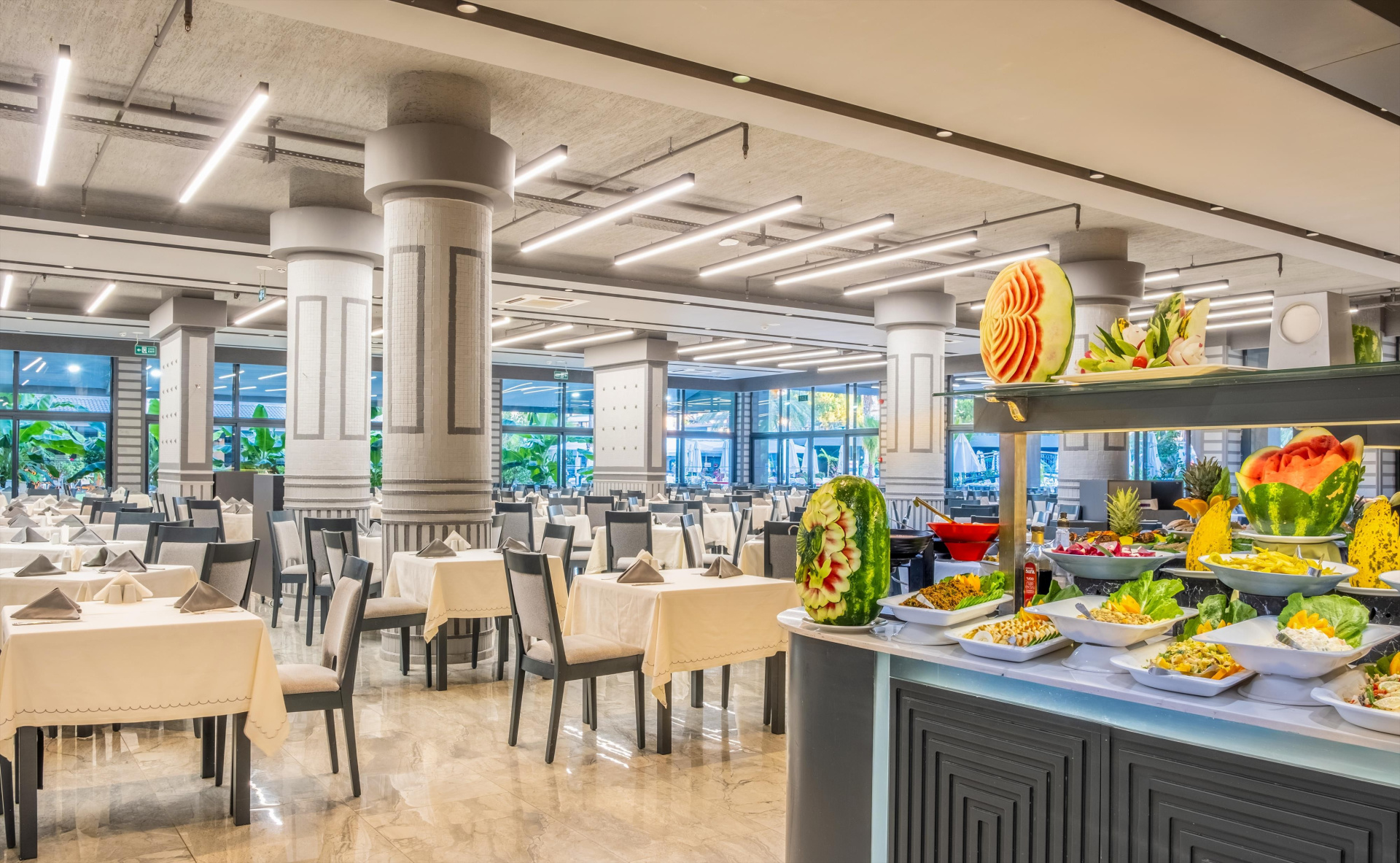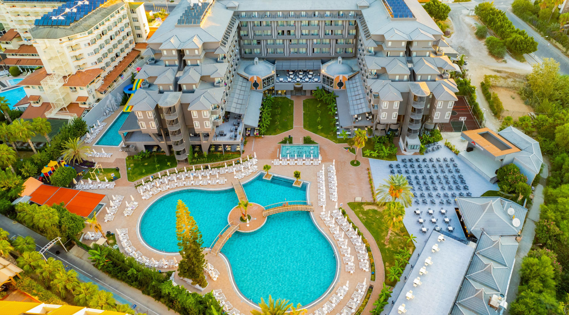 A nemrégiben felújított szálloda kb. 300 m-re fekszik a strandtól és kb. 4 km-re Side városától, ahol számos üzlet található. A létesítményben változatos All Inclusive program, vízicsúszdák és animációs programok várjk a vendégeket. Családos vendégek részére ajánljuk.