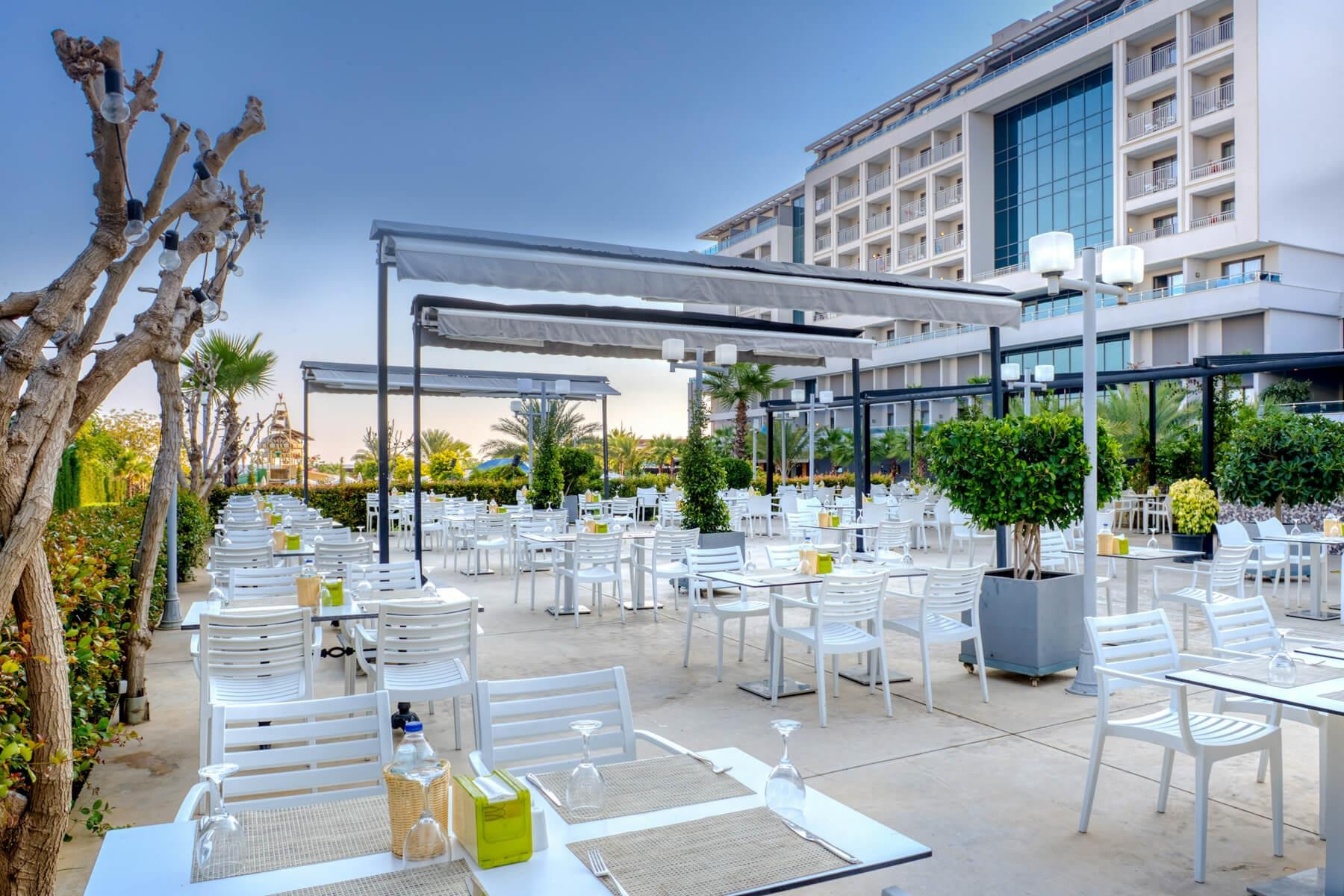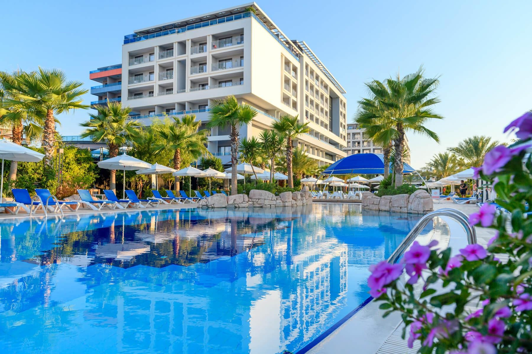 A közvetlenül a gyönyörű, homokos tengerparton fekvő, 5 csillagos szálloda kiváló szolgáltatásokat és lélegzetelállító kilátást kínál a Taurus-hegységre és az Égei-tengerre. A vendégeket Ultra All Inclusive ellátás, aquapark, spa-részleg, több étterem és hangulatos esti szórakoztató programok várják.