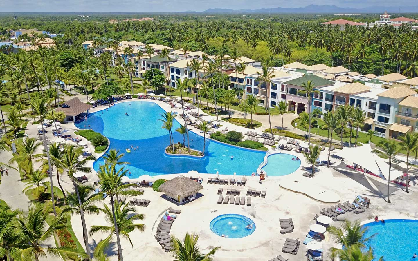 A közkedvelt, 708 szobás, 5*-os szálloda gyönyörű trópusi környezetben, közvetlenül a fehérhomokos tengerparton található, a Punta Canai Repülőtértől mindössze kb. 20 km-re.