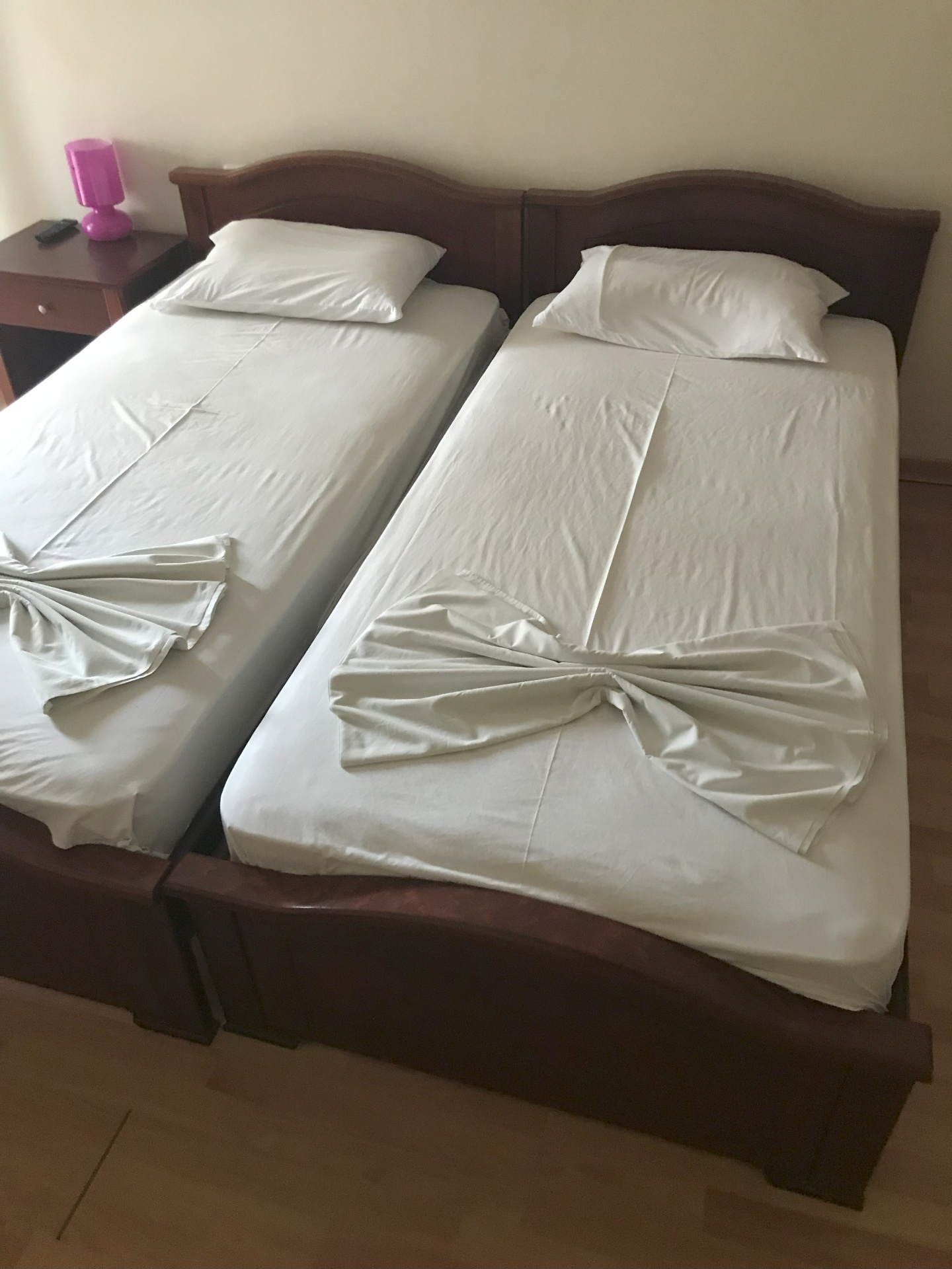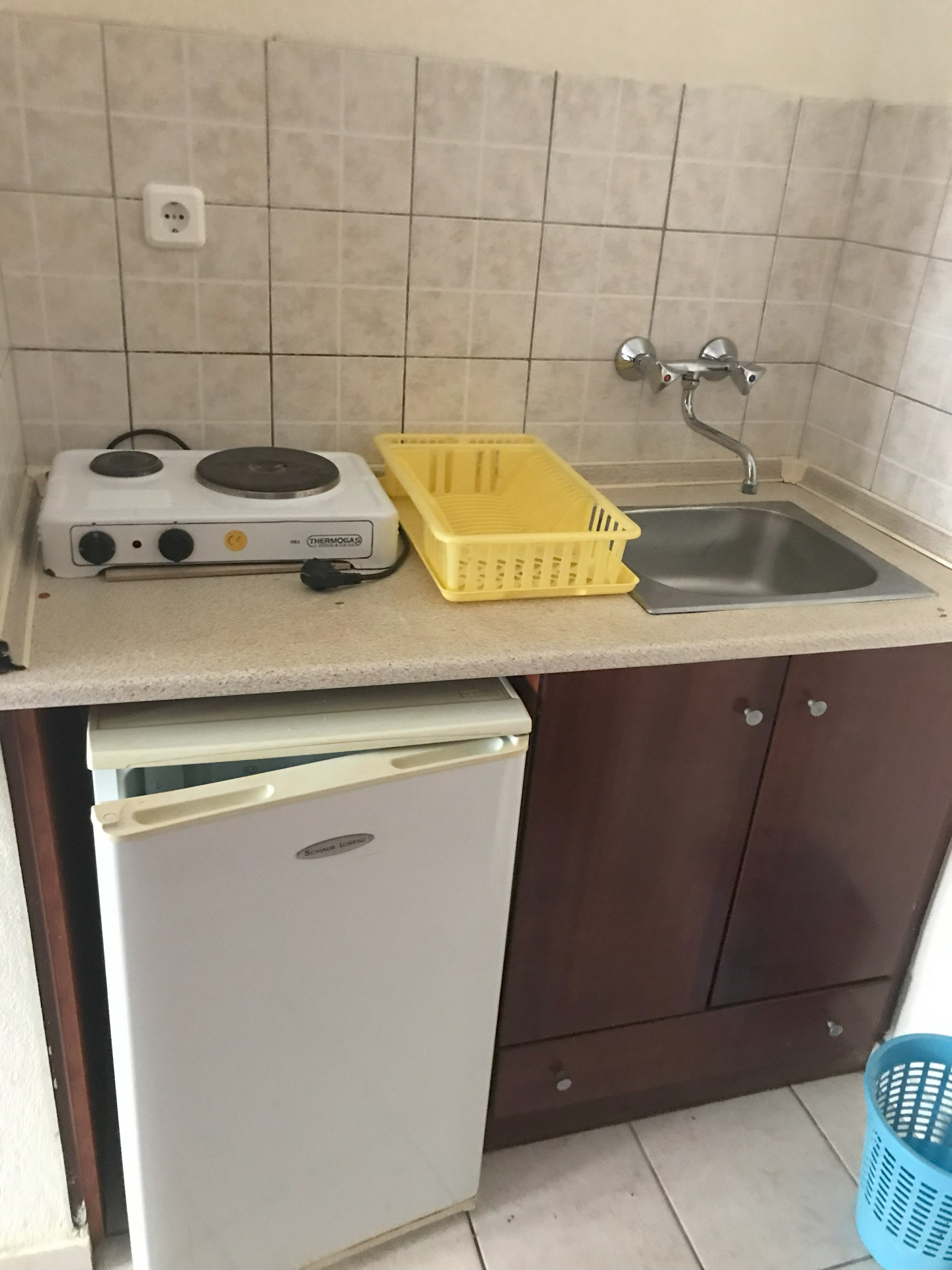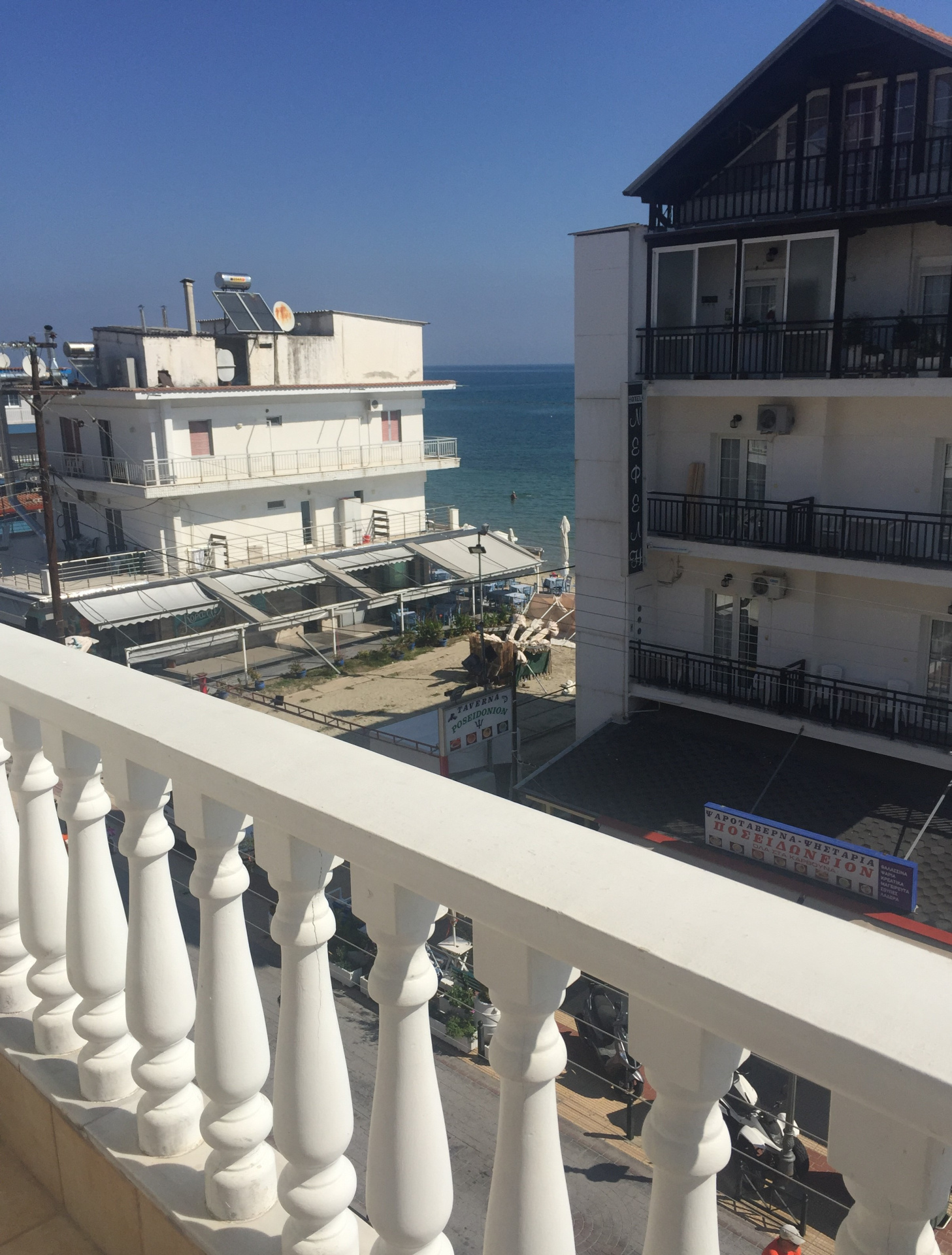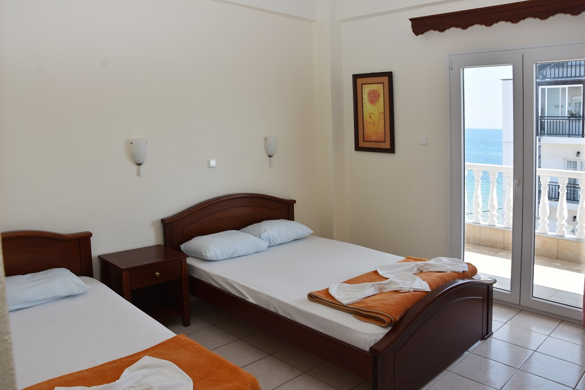 Fekvése: A kiváló elhelyezkedésű apartmanház Paralia sétálóutcáján, a széles, homokos tengerparttól kb. 50 méterre található. Közvetlen szomszédságában kávézók, tavernák, üzletsorok sokasága áll az itt üdülők rendelkezésére. Szolgáltatások: A négyszintes ház lifttel, WIFI-vel felszerelt (ingyenes), és társalgóval rendelkezik. A háztól kb. 100 méterre étterem, taverna, ajándékbolt található. Parkolási lehetőség a hátsó/távolabbi utcákban, vagy a kikötőnél található szabad parkolóban lehetséges. Elhelyezés: 2-3 ágyas stúdiókban, ahol az ágyak egy légtérben vannak a konyhasarokkal. A stúdiók lehetnek kertre/utcára, oldalról tengerre, illetve tengerre nézők. 4-5 ágyas apartmanban, amely 2 hálószobával és a legszükségesebb eszközökkel felszerelt konyhával rendelkezik, valamint tengerre néző. Minden lakóegységhez légkondicionáló (felár a helyszínen fizetendő, 35 EUR/hét/stúdió és 49 EUR/hét/apartman), tévé, kisméretű hűtő, zuhanyzós fürdőszoba, balkon tartozik kerti bútorokkal. Ellátás: Önellátás. (Vacsora, ill. félpanzió felár ellenében kérhető.)Egyéb: