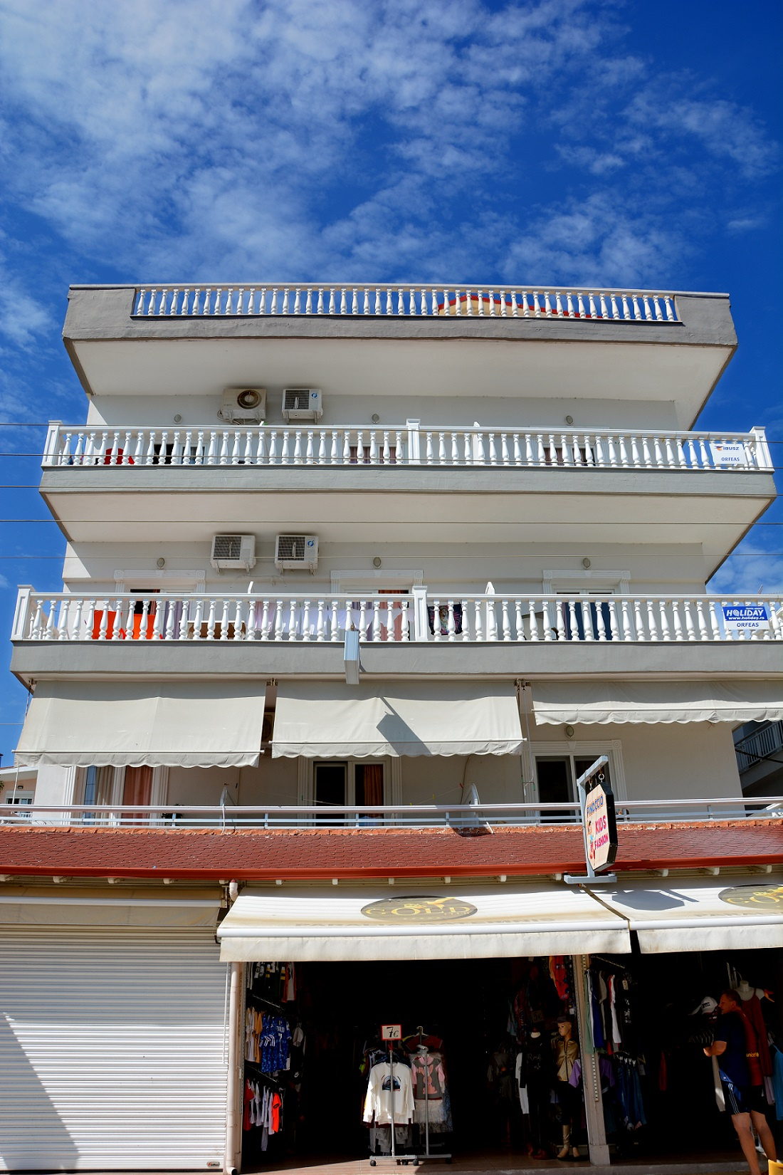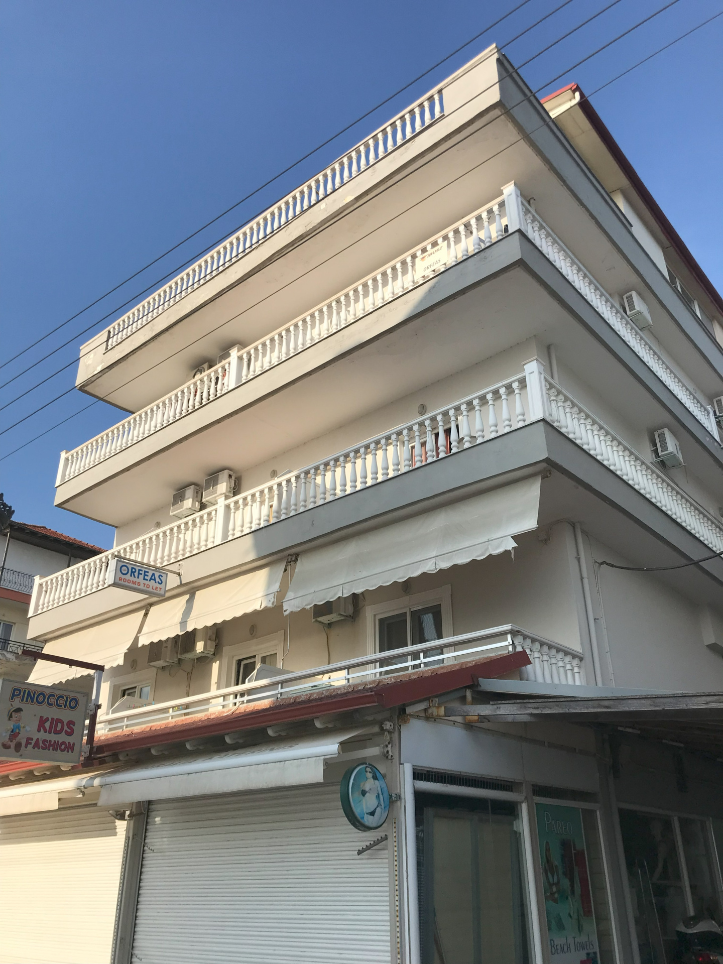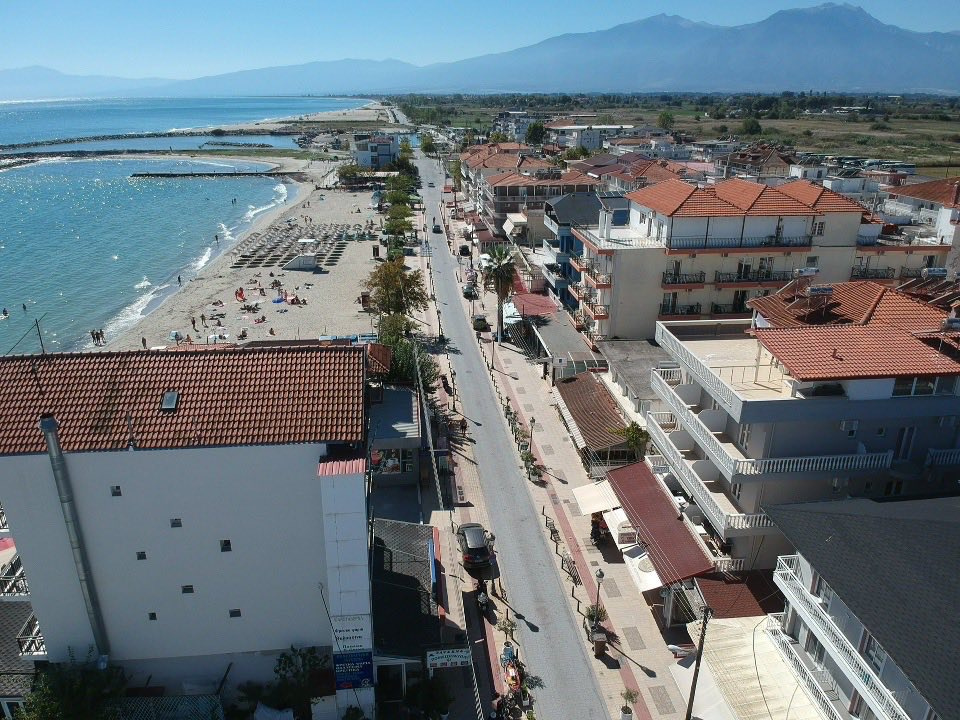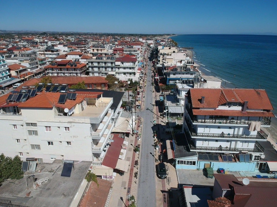 A kiváló elhelyezkedésű apartmanház Paralia sétálóutcáján, a széles, homokos tengerparttól kb. 50 méterre található. Közvetlen szomszédságában kávézók, tavernák, üzletsorok sokasága áll az itt üdülők rendelkezésére.