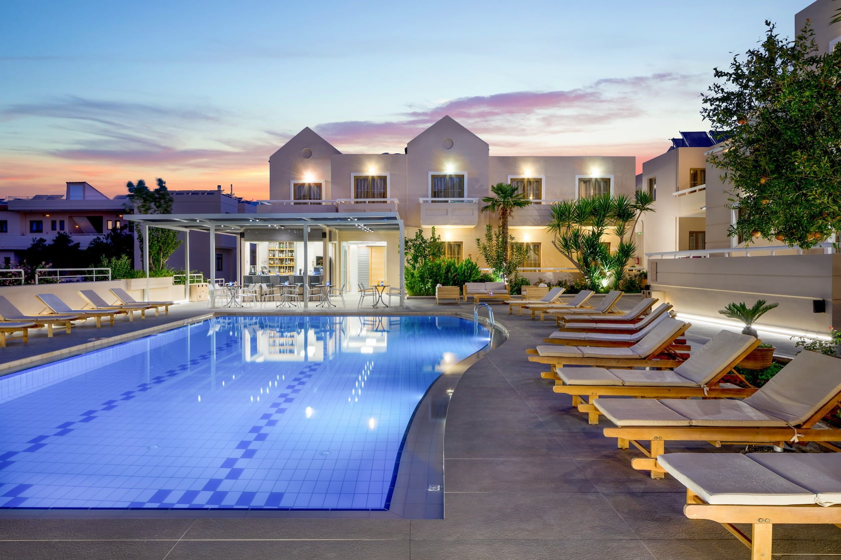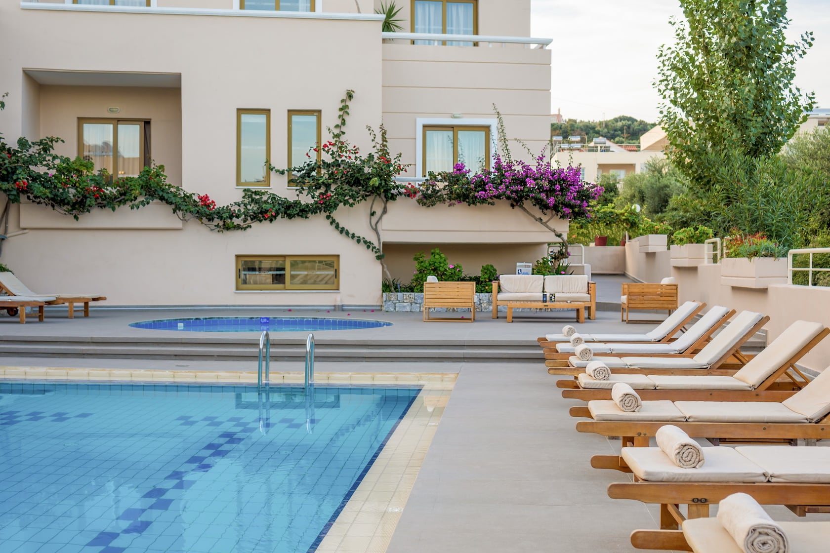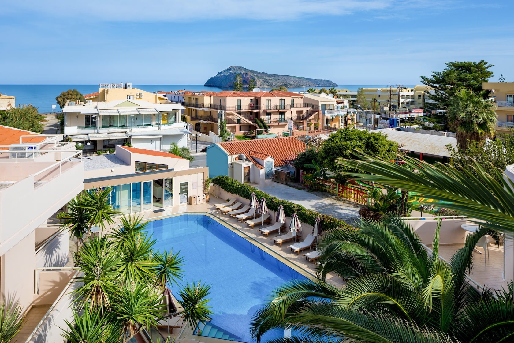 A hotel Chania központjától kb. 10 km-re, a chaniai nemzetközi repülőtértől kb. 24 km-re található. Közvetlenül a szálloda előtt egy buszmegálló is elérhető. Agia Marina központjától kb. 800 méterre, a homokos tengerparttól pedig kb. 200 méterre fekszik. A közelben számos üzlet, taverna és bár áll a vendégek rendelkezésére.