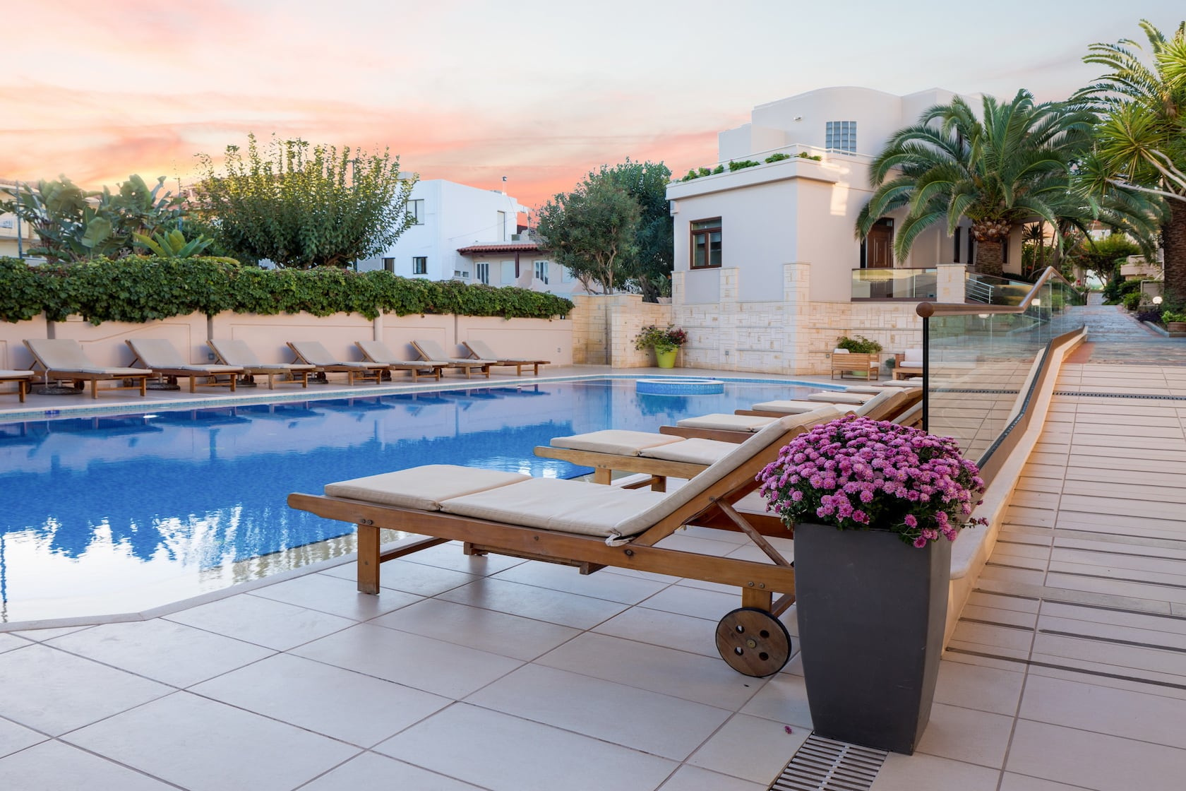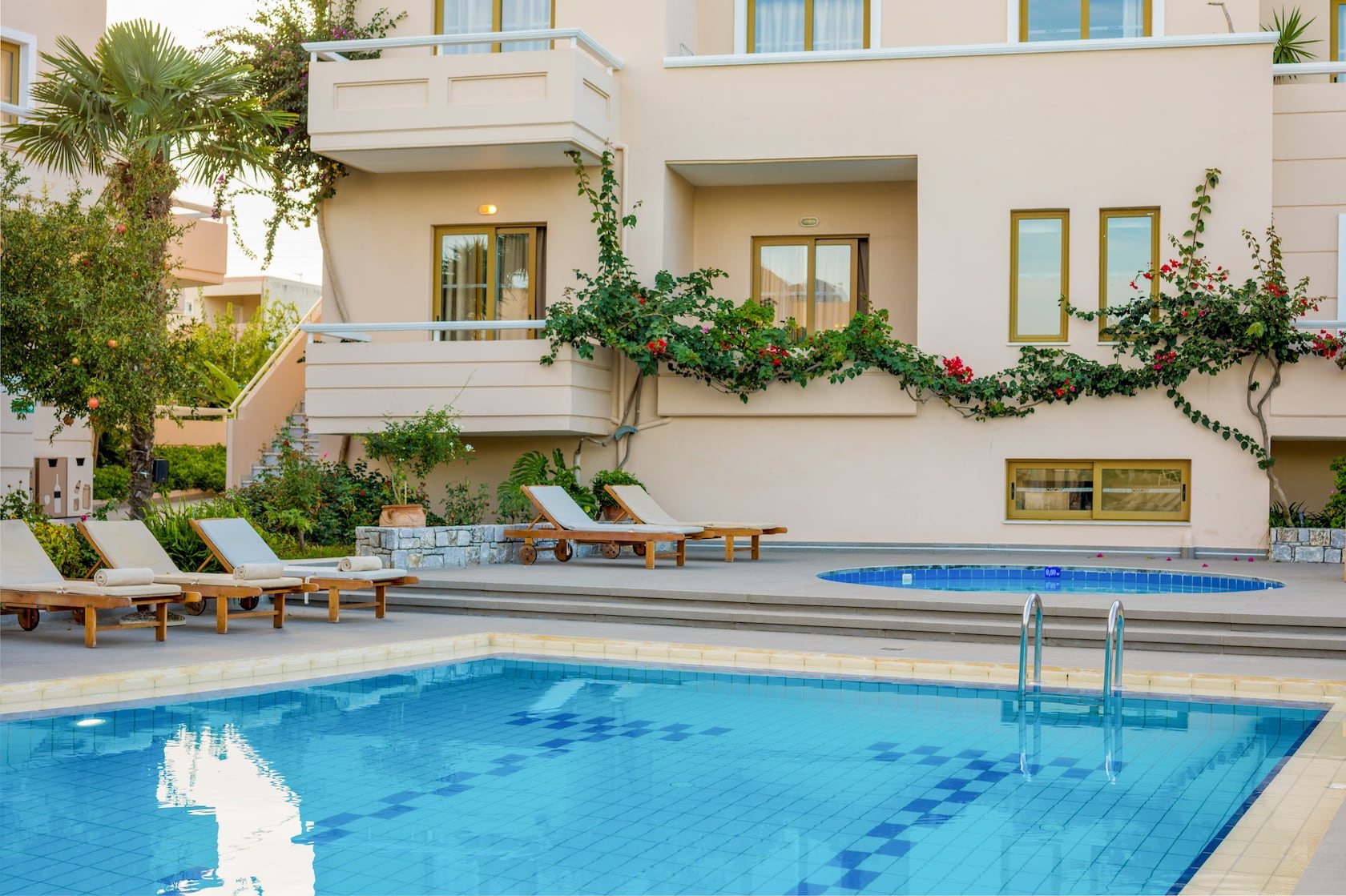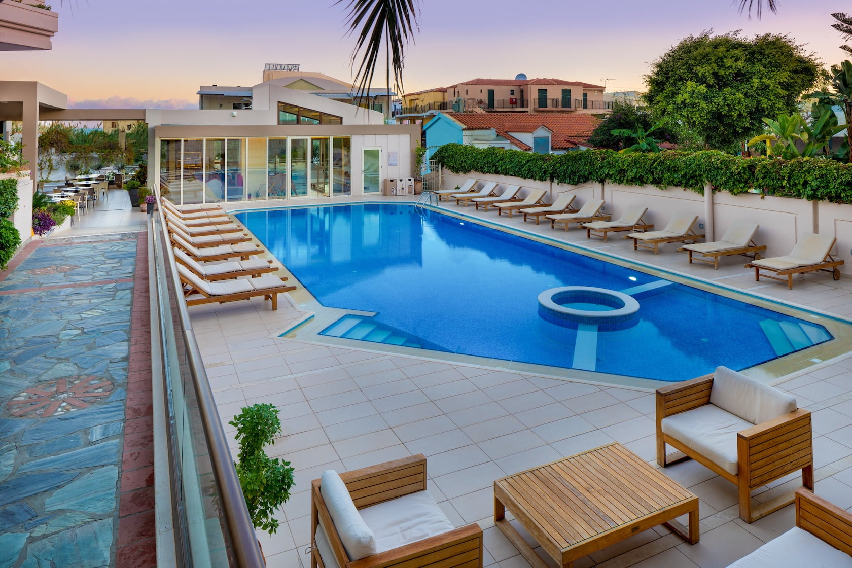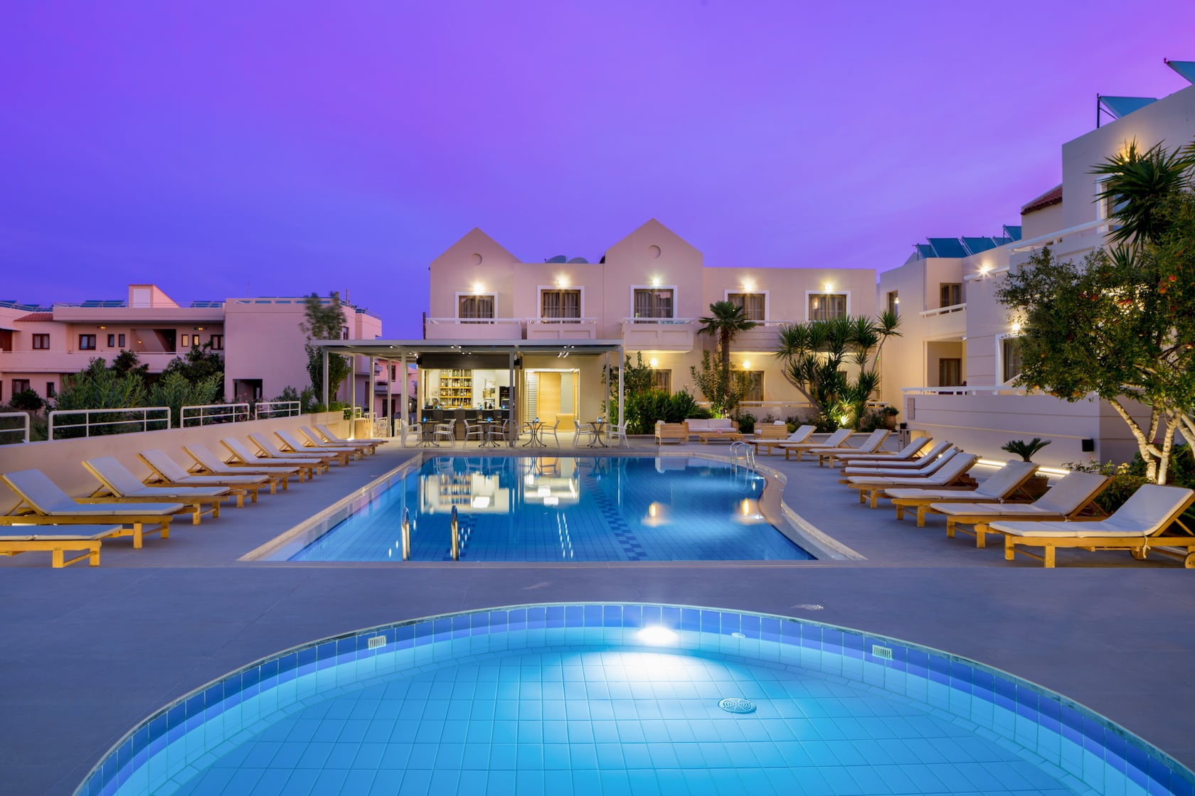 A hotel Chania központjától kb. 10 km-re, a chaniai nemzetközi repülőtértől kb. 24 km-re található. Közvetlenül a szálloda előtt egy buszmegálló is elérhető. Agia Marina központjától kb. 800 méterre, a homokos tengerparttól pedig kb. 200 méterre fekszik. A közelben számos üzlet, taverna és bár áll a vendégek rendelkezésére.