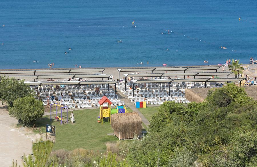TENGERPART: kb. 500 m-re a hoteltől • homokos-kavicsos • shuttle bus a tengerpartra ingyen