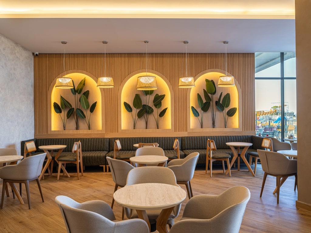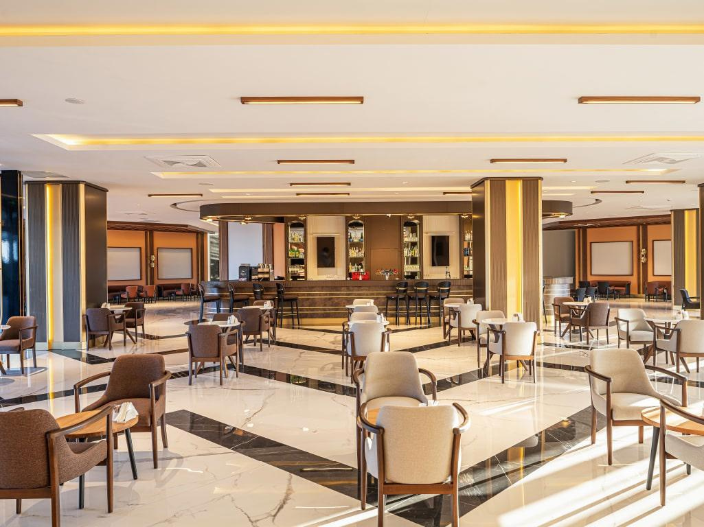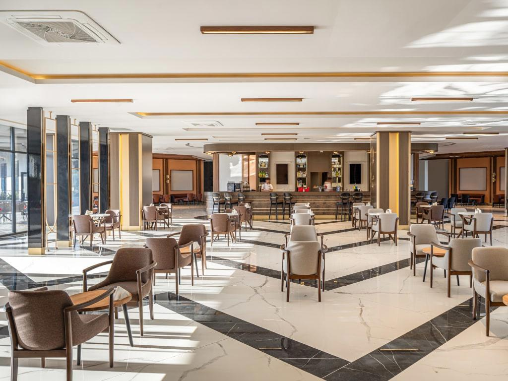 SZOLGÁLTATÁSOK: medence napernyőkkel és nyugágyakkal • beltéri medence • jacuzzi • vízicsúszdák • főétterem • bárok (lobby, medence, tengerpart stb.) • cukrászda • animációs programok • esti showműsorok • élőzene • diszkó • fitneszterem • aerobik • asztalitenisz • kosárlabda • zumba • strandröplabda • pilates • mini foci • darts • vízi torna • vízilabda • jóga • törökfürdő • szauna • gőzfürdő • térítés ellenében: SPA-központ • törökfürdős kezelések • masszázs • kozmetikai kezelések • manikűr és pedikűr • fodrászat • konferenciaterem