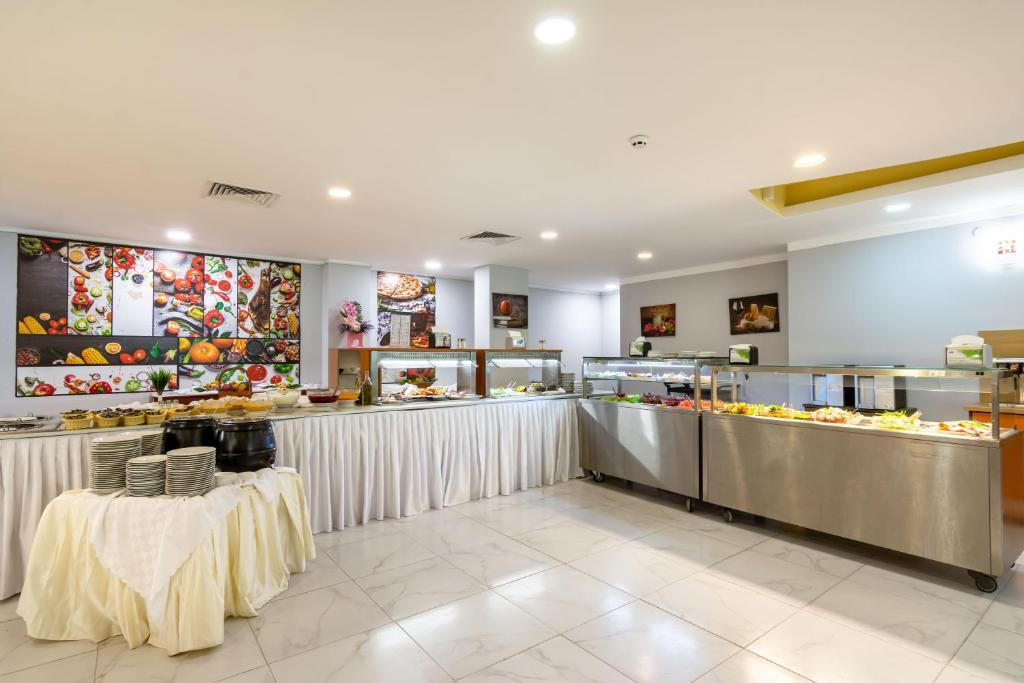 Az étkezésekhez egy terasszal rendelkező büféétterem, két bár, valamint a medencebár áll rendelkezésre. A szálloda italkínálata vízből, üdítőitalokból, kávéból és teából, sörből és borból áll.