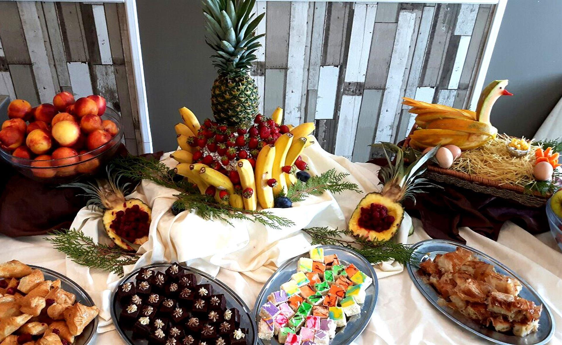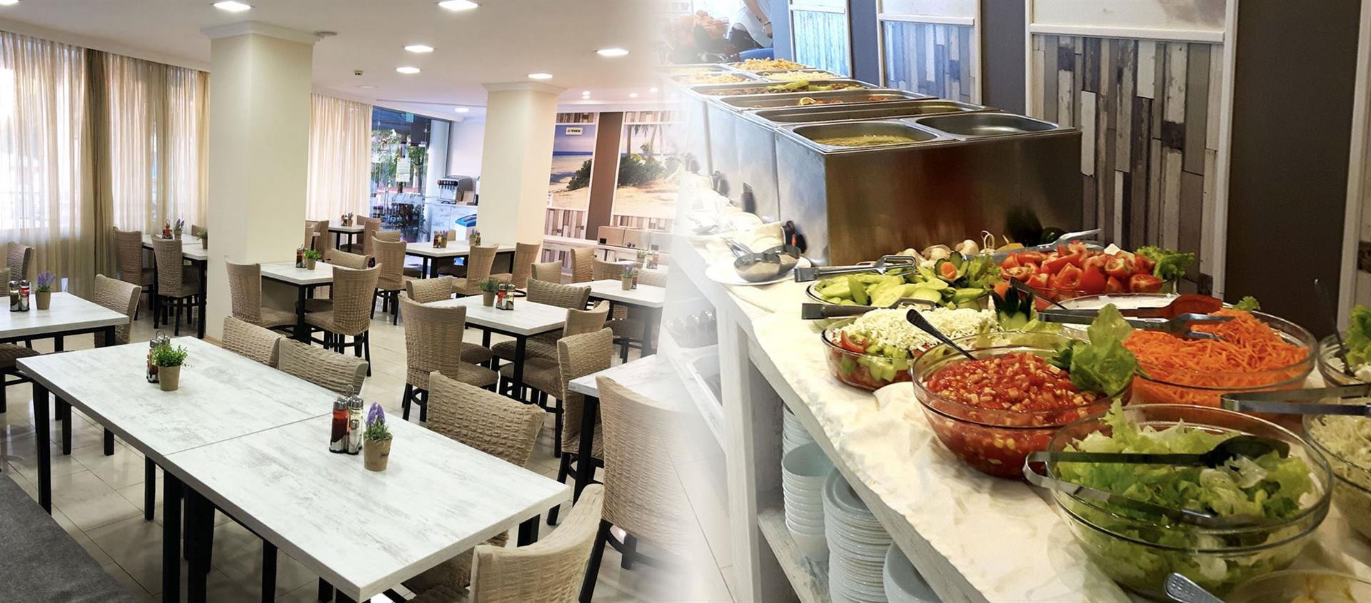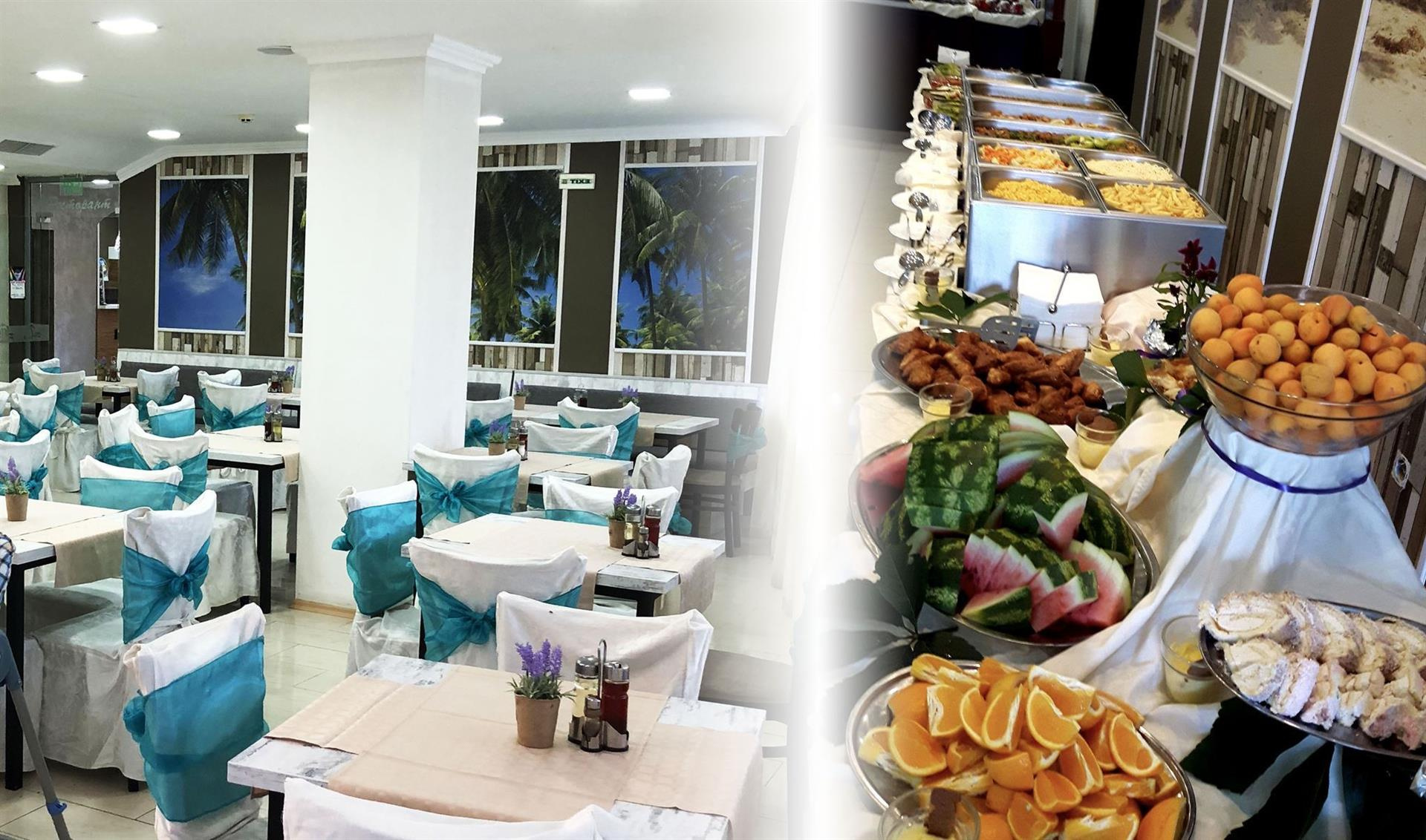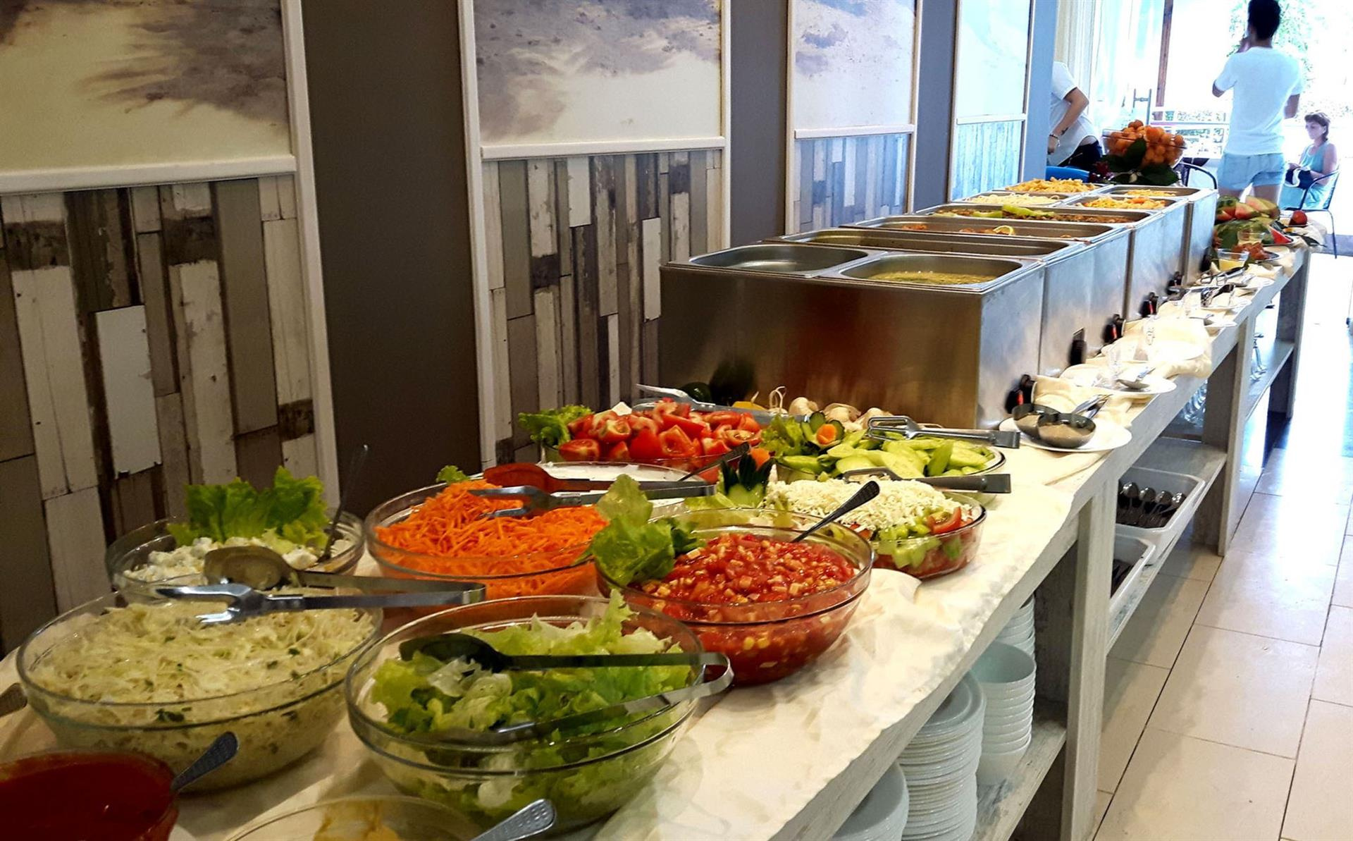 A koncepció tartalmazza Reggeli, ebéd, vacsora svédasztalos formában.