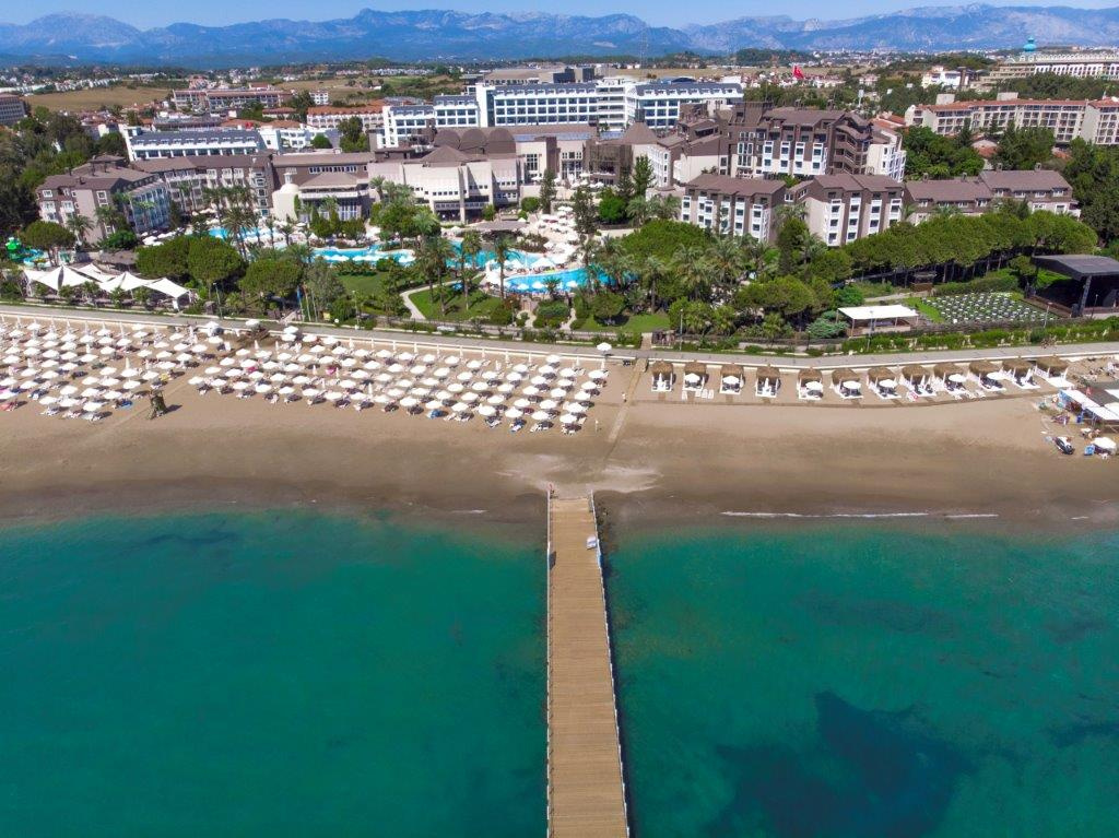 Fekvése: Az 1997-ben épült és 2019-ben teljesen felújított, kiváló minőségű szálloda az antalyai repülőtértől 65 km-re, Side központjától 3 km-re, közvetlenül a homokos- aprókavicsos tengerpart mentén helyezkedik el. Nyaralásunk során nemcsak Side ókori romjait vagy bazárok kínálatát érdemes felfedeznünk, de kipróbálhatjuk a szállodalánc 20 csúszdás aquparkját is, ahová a szálloda ingyenes transzfert biztosít (előzetes regisztrációval!). Élvezze a szálloda kiváló minőségű szolgáltatásait, a természetes étrendet előtérbe helyező koncepcióját, a hűsítő habokat, finom koktélokat és felejtse el a hétköznapi gondokat! Szolgáltatások: Medence napozóágyakkal és napernyőkkel, gyerekmedence, beltéri medence, gyerekcsúszdák 4-12 éveseknek, nappali és esti animációs programok, showműsorok, élő zene, mini klub (4-12 éveseknek) mini disco, mini mozi, játszótér, tini klub (13-16 éveseknek) számítógépes játékokkal és DJ oktatással, török fürdő, szauna, fitnesz terem, vízi torna, aerobic, stretching, strandröplabda, asztalitenisz, boccia, darts, sakk, wifi elérhetőség a szálloda egész területén. A homokos- kavicsos, részben sziklás strandon napozóágyak, napernyők és törölközők díjmentesen állnak a vendégek rendelkezésére. Térítés ellenében: Spa részleg kezelései, masszázsok, szépségszalon, fodrászat, orvosi szolgálat, mosoda, vízi sportok a strandon, pavilon bérlés, üzletek, gyermekfelügyelet. Elhelyezés: A 352 kényelmesen berendezett szoba mindegyike központi légkondicionálóval, SAT-TV-vel, telefonnal, széffel, vízforralóval, minibárral, hajszárítóval, zuhanyzós fürdőszobával és erkéllyel rendelkezik. A standard szobák 24 nm-esek, max. 2 fő részére foglalhatók. a nagyméretű standard szobák 35 nm-esek, max. 3 felnőtt + 1 gyermek részére foglalhatók. A Suite szobák 60 nm-esek egy nappalival és ajtóval elválasztható hálószobával rendelkezik, max.4 felnőtt részére foglalhatók. Ellátás: Ultra All Inclusive: Reggeli, ebéd és vacsora büférendszerben, késői reggeli, frissen facsart narancslé a reggelihez, éjjeli snackek (23:00-07:00), látványfőzések, napközbeni snackek, kávé/tea, sütemények, fagylalt bizonyos időpontokban, fogyasztás az a’la carte étteremben (mediterrán, tartózkodás során egy alkalommal, előzetes asztalfoglalással), naponta vízzel, üdítőkkel és sörrel feltöltött minibár, helyi és néhány import alkoholos és alkoholmentes italok a nap 24 órájában. Térítés ellenében: Palackozott és import italok, fogyasztás a’la carte étteremben (grill, előzetes asztalfoglalással), szobaszervíz.Egyéb: