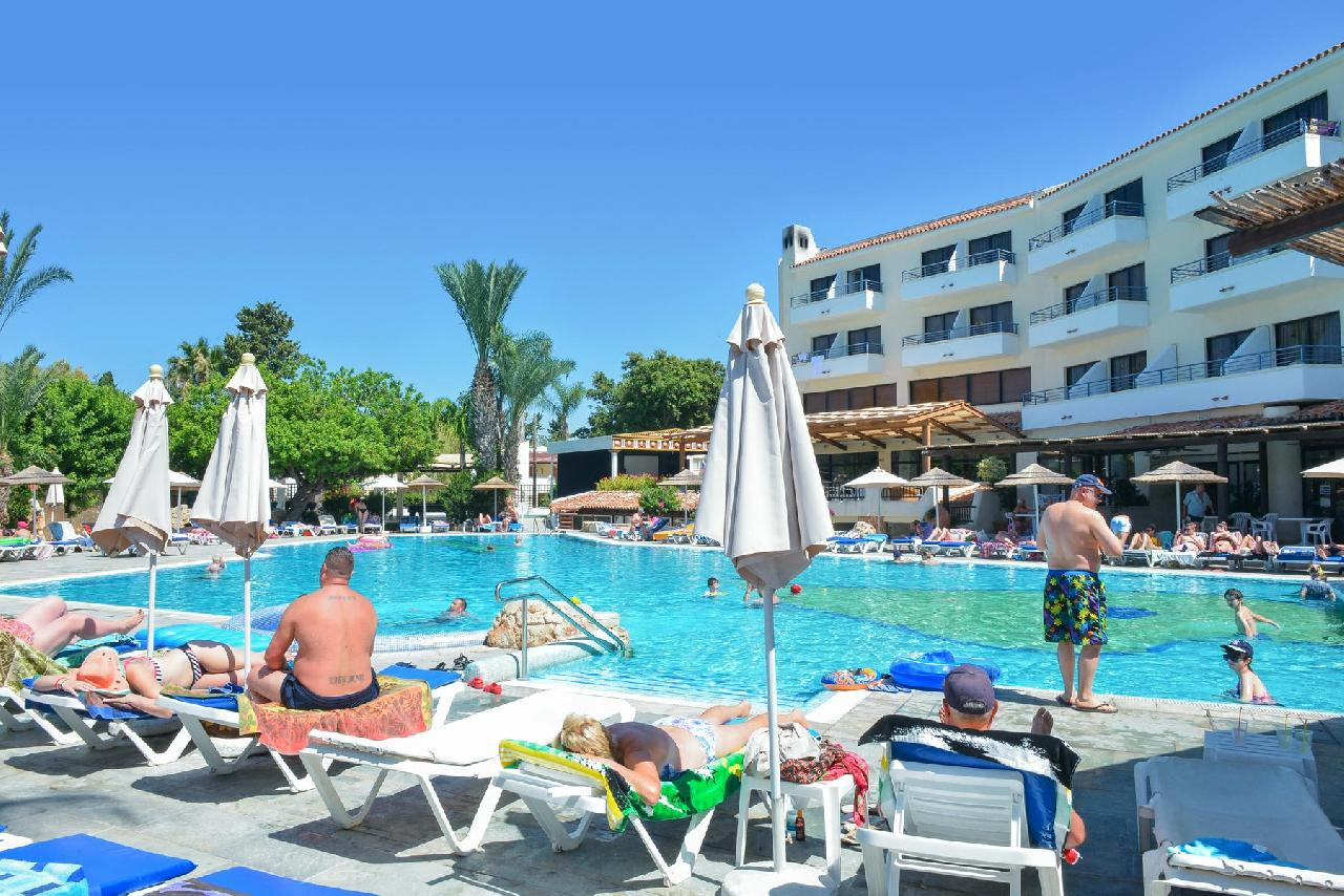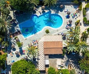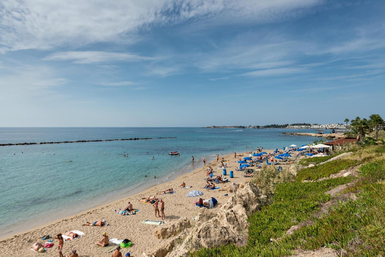 Fekvése: Paphos üdülőövezeti, Kato Paphos elnevezésű részén, a tengerpartól és a több kilométer hosszú sétánytól ~400 méterre, a városi leghíresebb szállodasora és a Posseidonos Avenue közelében (200m) épült, rendkívül népszerű, hangulatos mediterrán kerttel rendelkező, apartmanhotel jellegű szálláshely. A szálloda épületei mediterrán stílusban készültek, a nagy parkosított terület kellemes kikapcsolódást biztosít a vendégek számára.A szálloda környéki legtöbb partszakasz sziklás, azonban a hotelhez legközelebbi strand (Sodap Beach) festői környezetben homokos parton található mindösszesen 400 méternyire. A szállás ideális választás mind a családok, mind a pihenésre vágyók számára. A nyüzsgő városközpont könnyen elérhető gyalogosan vagy tömegközlekedéssel. Paphos városközpontja és a kikötő 2 km-re fekszik.A térség egyik legszebb strandja a Coral Bay kb. 10 km-re (taxival ~15 euró) található. Buszmegálló a szálloda közelében (a buszjegy ára kb. 1,50 euró).