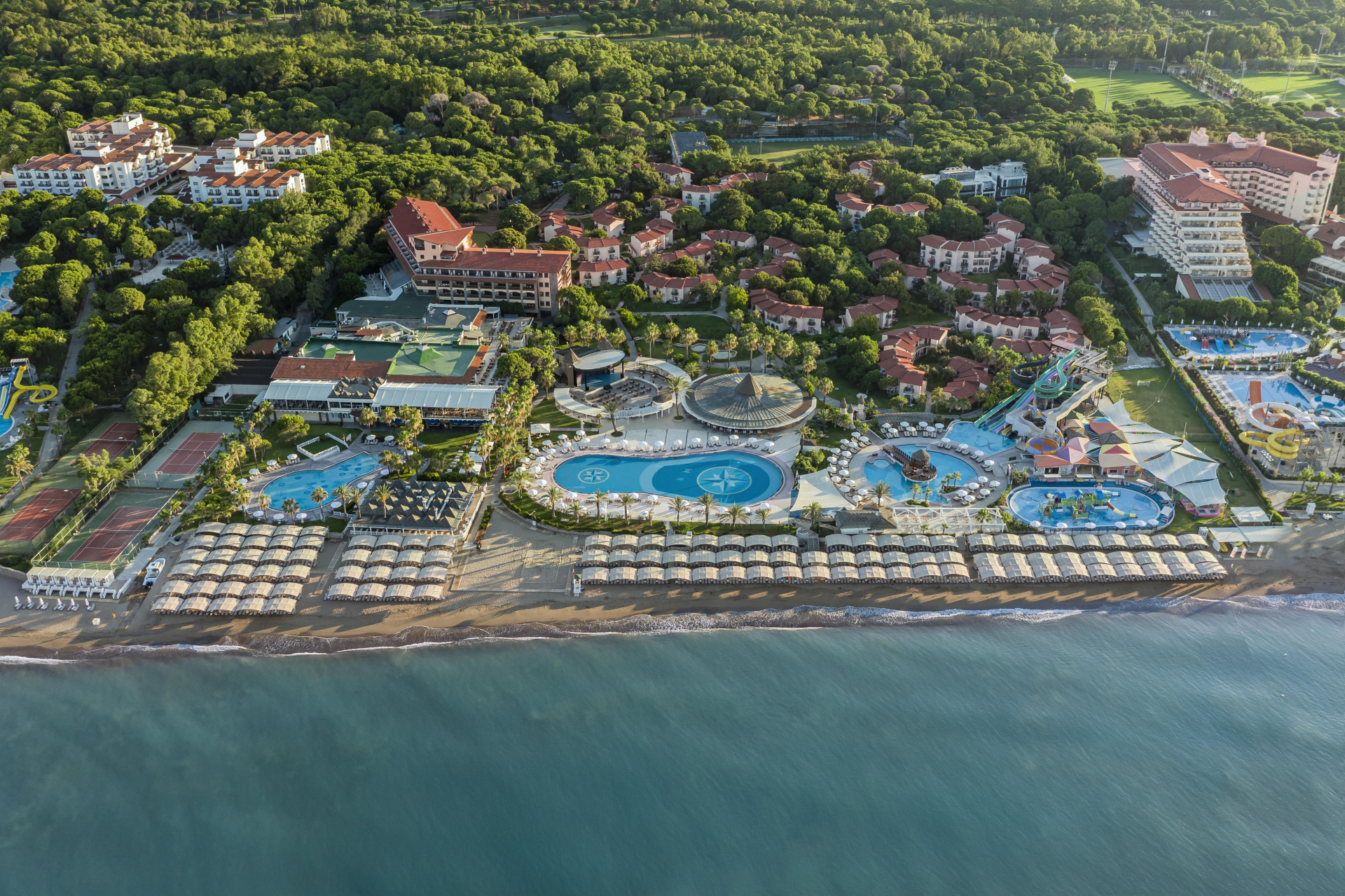A fenyőerdővel körülölelt, 5 csillagos szálloda minőségi kulináris ajánlatokat és széleskörű szolgáltatásokat kínál, közvetlenül a homokos tengerparton. Nagy területen fekszik, egy főépületből és több, kisebb kétemeletes épületből áll. Egyes szobák kicsit messzebb eshetnek a tengerparttól. A központ taxival vagy dolmusszal könnyen megközelíthető, ahol rengeteg étterem, bár és üzlet található. Elsősorban gyermekes családok számára ajánljuk.