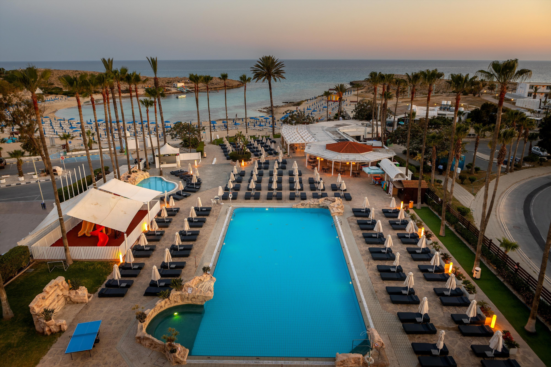 A fő- és melléképületből álló szálloda a népszerű Ayia Napa központjának közelében található, közvetlen kijárattal a gyönyörű homokos öbölhöz. A modern létesítményben nagy hangsúlyt fektetnek a hagyomás görög vendégszeretetre.