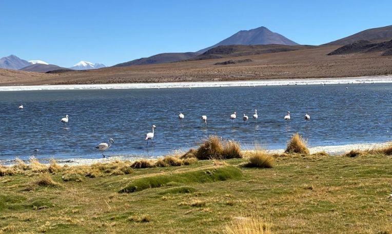 Reggeli után a Sud Lípez régió felé utazunk, ahonnan a távolból megcsodálhatjuk az aktív Ollagüe vulkán látványát. Ezt követően belépünk az Eduardo Avaroa Nemzeti Rezervátumba, ahol szerencsés esetben vadon élő vikunyák karcsú alakja tűnik fel a tájban. Utunk során érintjük a festői Cañapa és Hedionda lagúnákat, ahol megfigyelhetjük az Andok három jellegzetes flamingófaját természetes élőhelyükön.