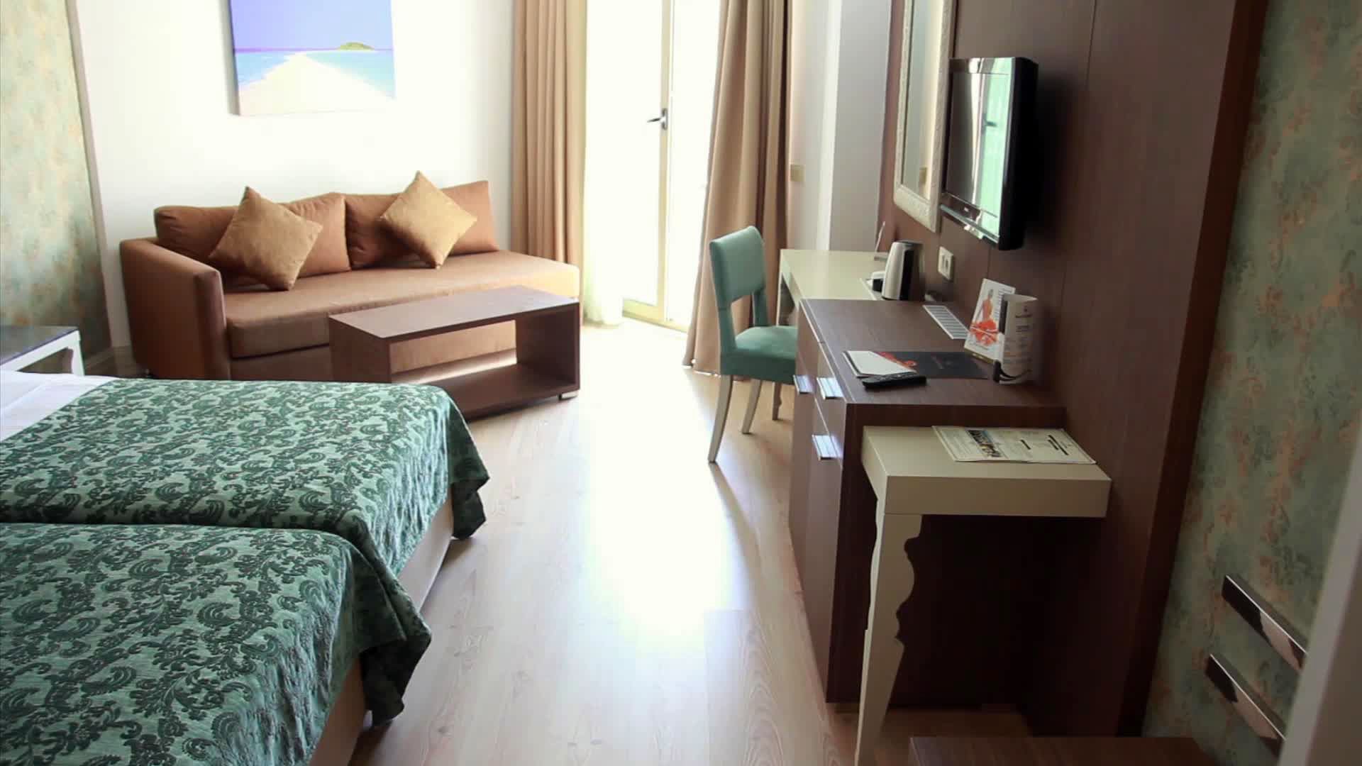 A szobákat légkondicionáló berendezéssel, központi fűtéssel és fürdőszobával szerelték fel. A vendégek a teraszon, illetve az erkélyen is kényelembe helyezhetik magukat. A szobákban egy franciaágy vagy egy king size ágy található. A gyerekeknek kiságyat biztosítanak. Ezen kívül van széf és minbár is. Az alapfelszereltséghez tartozik egy tea-/kávéfőző is. Internet-hozzáférés, egy telefon, egy TV-készülék, egy rádió és WiFi is a vendégek kényelmét szolgálja a nyaralás alatt. A szobákban szobapapucs is található. Mozgáskorlátozottaknak kialakított szobák is foglalhatóak. A fürdőszobában zuhanyzó található. A fürdőszobában található hajszárító és fürdőköpenyek a mindennapi kényelmet szolgálják. A kényelemhez hozzájárul, hogy a fürdőszobákban kozmetikai cikkek is található(ak). Családi szobát és nem dohányzó szobát is foglalható.