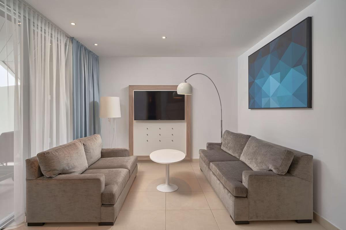 A tágas és elegánsan berendezett szobák és lakosztályok légkondicionálóval, ingyenes Wi-Fi-vel, műholdas és Apple TV-vel, valamint nagy erkéllyel vagy terasszal rendelkeznek, ahonnan élvezhetik a meleg kanári-szigeteki napot. A fürdőszobákban fürdőköpeny és papucs biztosítja a kényelmet.