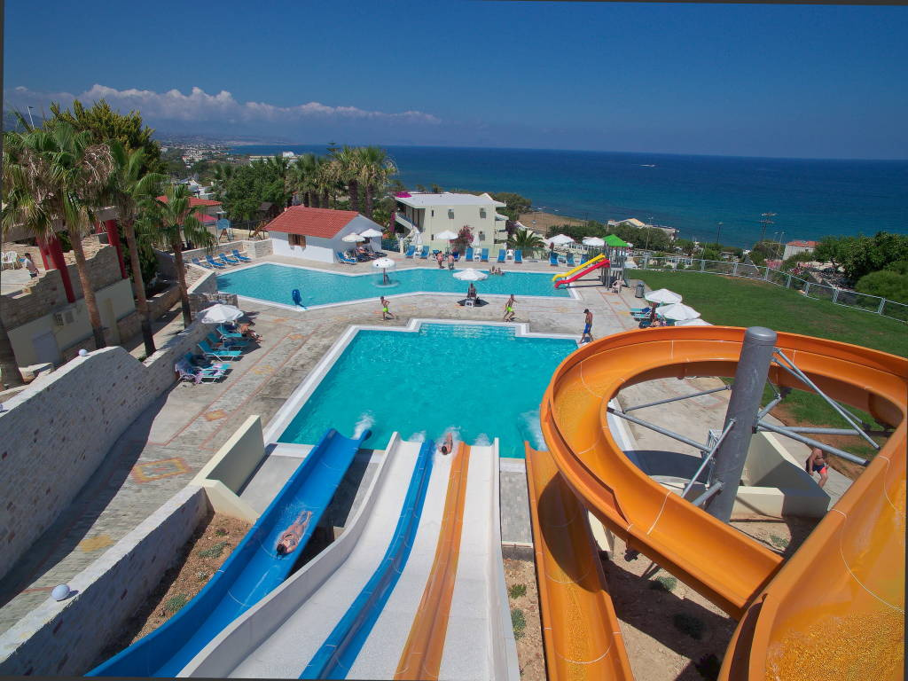 A Rethymno Mare & Water Park minden szobája és lakosztálya a görög és a modern stílust ötvözi, és a medencére vagy a Krétai-tengerre néz.