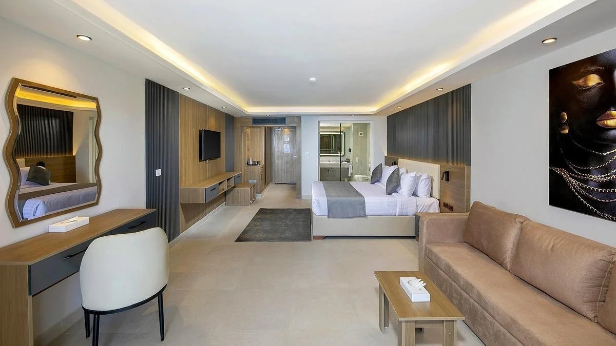A szállodában többféle szoba foglalható, köztük kétágyas szoba (48 m²) tájra vagy tengerre néző kilátással, pótágyazási lehetőséggel, valamint két fős bungalló (52 m²), szintén tájra néző kilátással és pótágyazási lehetőséggel. Családok számára 3 fős családi szoba (65 m²) is elérhető, amely akár 4 fő részére is kényelmes szállást biztosít. Minden szoba felszereltsége tartalmazza az erkélyt vagy teraszt, fürdőszobát káddal vagy zuhanyzóval, kávé- és teafőzőt, minibárt, légkondicionálót, LCD TV-t, telefont, wifit és széfet a vendégek kényelme érdekében.