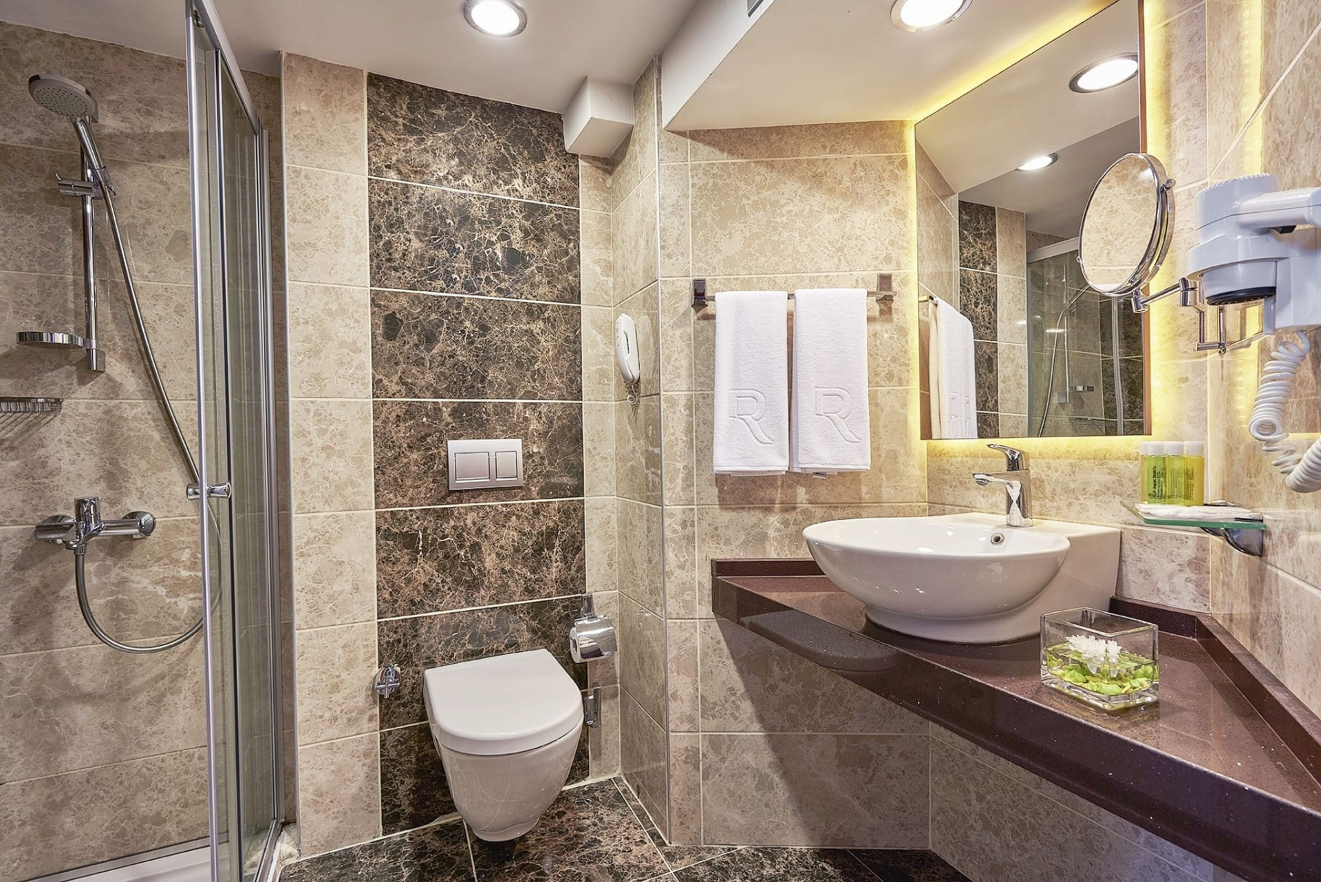 - fürdőszoba (zuhanyozó, hajszárító, WC)
