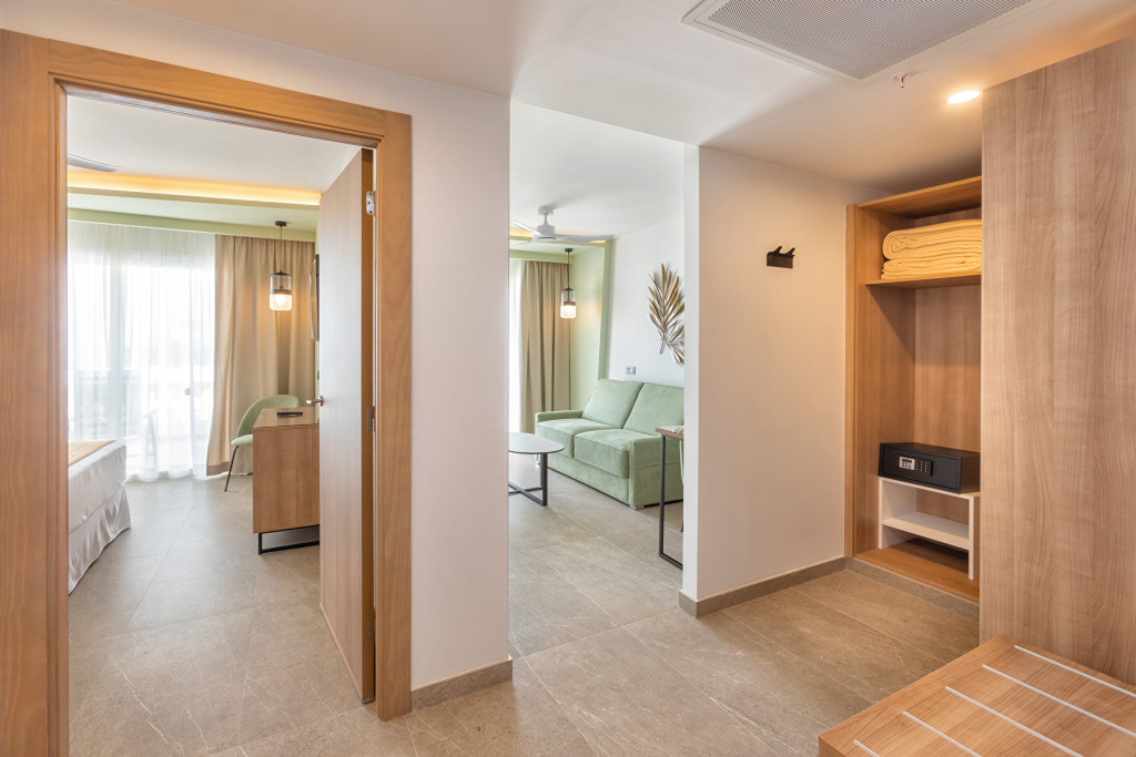 • Kétágyas szoba Szoba mérete: 30 m2 Kilátás: utca vagy kert A Hotel Riu Palace Maspalomas kétágyas szobái úgy kerültek kialakításra, hogy maximális pihenést nyújtsanak Önnek a nyaralás során. Ezekben a 30 m2-es szobákban két különálló ágy (110x200 cm) vagy egy queen-size ágy (200x200 cm), valamint egy kanapé található. A szoba további felszereltsége: WiFi, TV, légkondicionáló, vízforraló és erkély vagy terasz. • Óceánra néző szoba Szoba mérete: 30 m2 Kilátás: óceán A Hotel Riu Palace Maspalomas kétágyas szobái úgy kerültek kialakításra, hogy maximális pihenést nyújtsanak Önnek a nyaralás során. Ezekben a 30 m2-es szobákban két különálló ágy (110x200 cm) vagy egy queen-size ágy (200x200 cm), valamint egy kanapé található. Az erkély hihetetlen kilátást nyűjt a maspalomasi homokdűnékre és az Atlanti-óceánra. A szoba további felszereltsége: WiFi, TV, légkondicionáló, vízforraló és erkély vagy terasz. • Junior lakosztály Szoba mérete: 45 m2 Kilátás: utca vagy kert vagy óceán A Hotel Riu Palace Maspalomas Junior lakosztályai a a legmagasabb kényelmi szolgáltatásokat nyújtják Önnek egy felejthetetlen nyaraláshoz. Ezekben a 45 m2-es szobákban queen méretű kétszemélyes ágy (200x200 cm) várja, a nappaliban kinyitható kanapét is talál. A lakosztály további felszereltsége: Wi-Fi, TV, légkondicionáló, vízforraló és erkély vagy terasz áll rendelkezésre. Sőt, a szobához tartozik egy balinéz ágy is a szálloda kertjében.