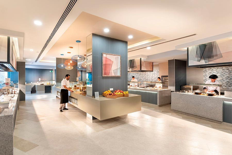 • Fő étterem Reggeli: büfé jellegű étkezés, látványkonyha állomások, harapnivalók Ebéd: büfé jellegű, látványkonyha kertein belül készült ételek, válogatott desszertek Vacsora: hideg és meleg előételek, büfé jellegű főételek, látványkonyha, vegetáriánus fogások, desszertek svédasztalos rendszerben; heti két alkalommal tematikus vacsorák • Krystal fúziós étterem Vacsoráját ebben az étteremben is fogyaszthatja, amennyiben valami újra vágyik. Dresscode: uraknak vacsoraidőben hosszúszárú nadrág kötelező! • Lobby bár • Lounge bár • Medence bár *Az All Inclusive 24 szolgáltatás keretein belül a vendégek számára a nap 24 órájában elérhetők harapnivalók, helyi és külföldi alkoholos és alkoholmentes italok a bárokban és éttermekben.