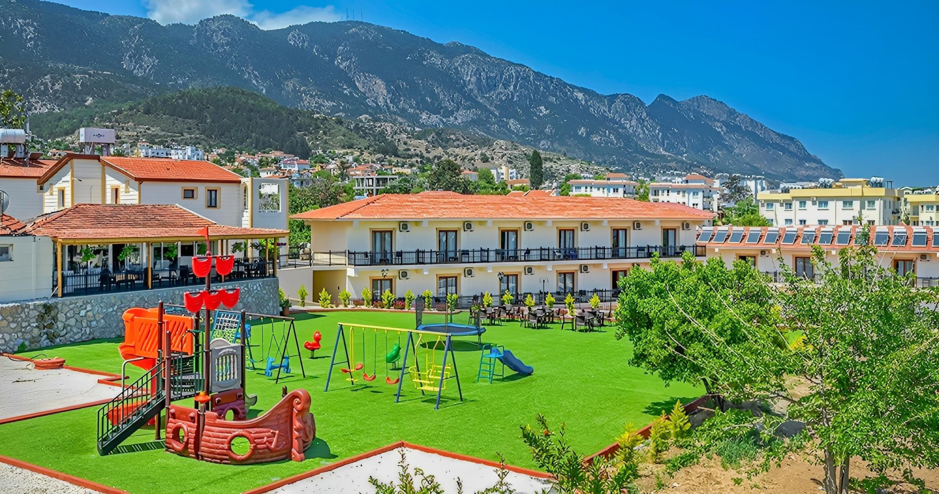 A szépen kialakított komplexum színvonalas szolgáltatásokat kínál, és kiváló választás családok számára. A homokos strand kb. 2 km-re található, ahova transzferbusz közlekedik. A kertben csúszdás medence is várja a vendégeket.
